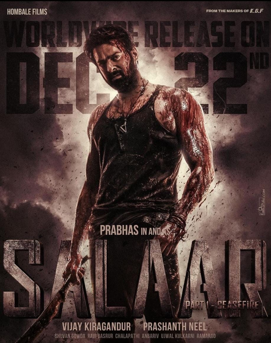 Hombale Films, Salaar: Part 1 – Ceasefire will star Prabhas along with Prithviraj Sukumaran, Shruti Haasan, and Jagapathi Babu. Made under the direction of Prashanth Neel, the film will be released in theaters on December 22, 2023.