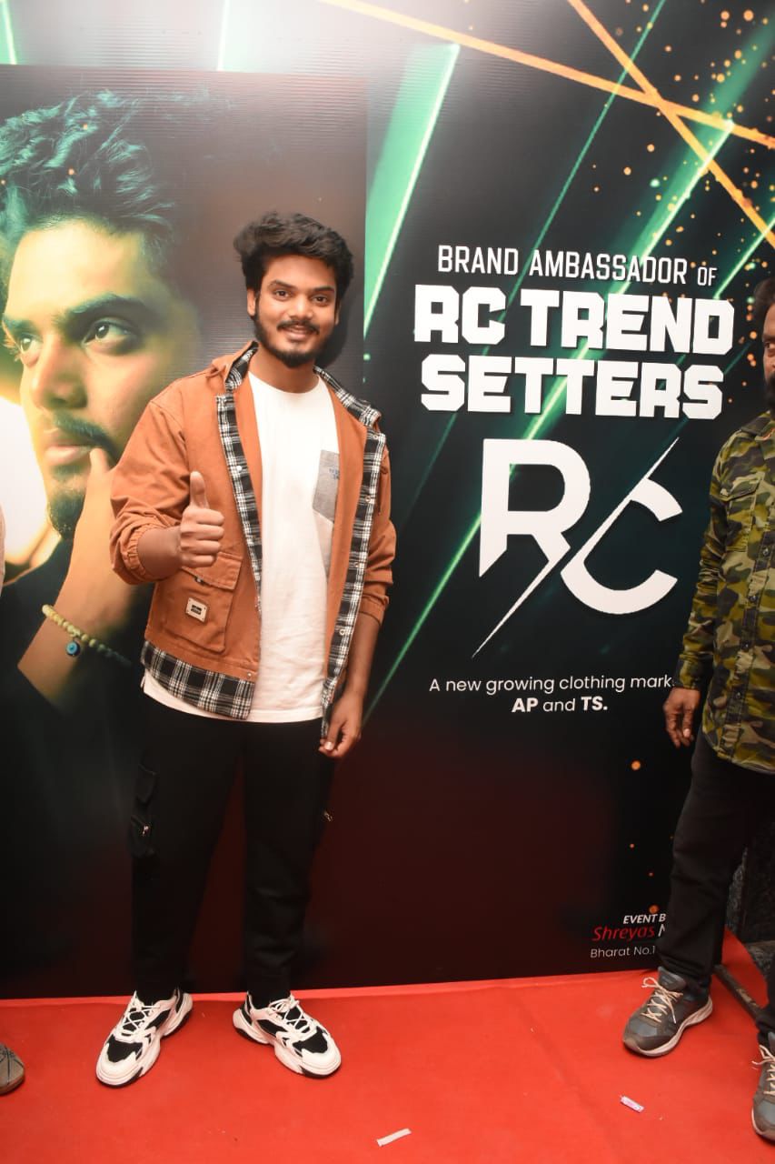 Young hero Akash Puri, who opened the RC Trendsetters fashion store in Moosapet, Hyderabad, serves as the brand ambassador for the newly launched RC Trendsetters clothing brand. The store, inaugurated by Akash Puri alongside RC Trendsetters founders Ramesh and Roman, is positioned to serve customers in Andhra Pradesh and Telangana under the banner of RC Trendsetters Crazy Men's Cloth Branding.