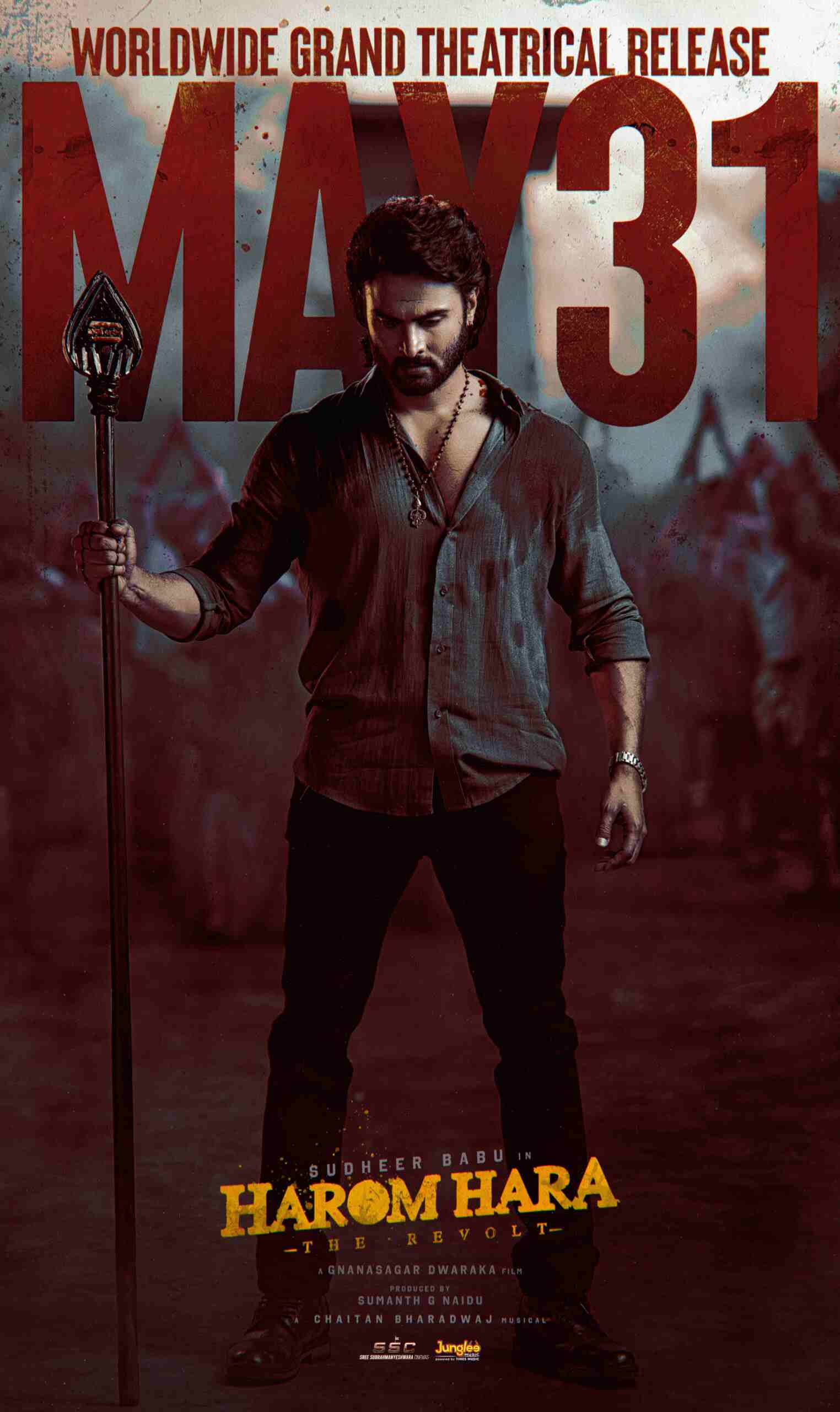 రిలీజ్ డేట్ పోస్టర్ పోస్టర్లో సుధీర్ బాబు చేతిలో వేలాయుధం ఉంది, అతని వెనుక ఉన్న వ్యక్తులు గౌరవ సూచకంగా చేతులు ఊపుతున్నారు. సూపర్ బాబు ఫెరోషియస్ గా కనిపిస్తున్న పోస్టర్ అదిరిపోయింది.
