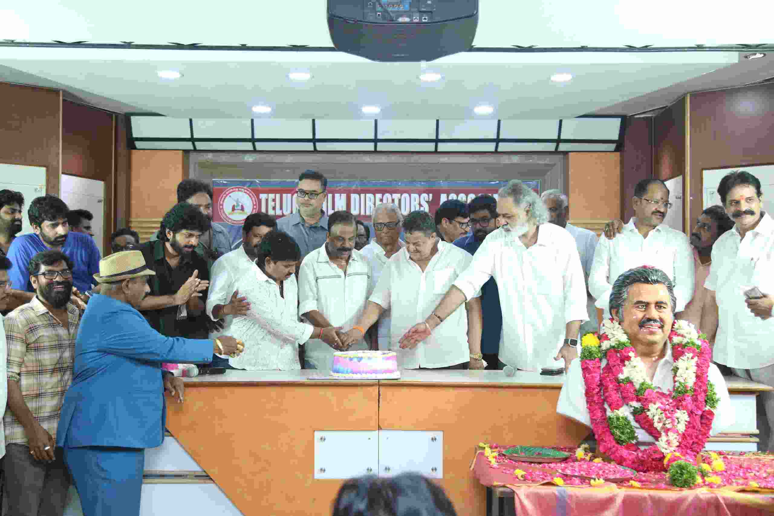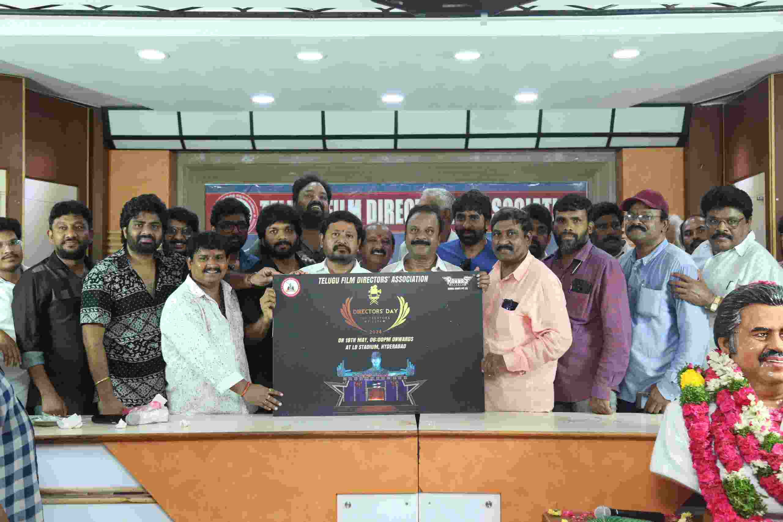 Darshaka Ratna Dasari Narayana Rao's birth anniversary was grandly celebrated by the Telugu Film Directors Association. President of the Directors Association, Veera Shankar, and directors Anil Ravipudi, Vashishta, Gopichand Malineni, Vijay Kanakamedala, Shankar, Relangi Narasimha Rao, director-producer Tammareddy Bharadwaja, Producer Council President Damodara Prasad, Producer C Kalyan, Federation President Anil Kumar Vallabhaneni, and Filmnagar Corporator Kaja Suryanarayana participated in the event held at the Hyderabad Film Chamber. Telangana Film Chamber Secretary Anupama Reddy, Producer Prasanna Kumar, and others also attended. Garlands were placed on Dasari Narayana Rao's statue within the Film chamber premises. During this program, it was announced that the Director's Day celebrations would take place on the 19th of this month at 6 pm at Hyderabad's LB Stadium. The event date poster was unveiled by Tammareddy Bharadwaja.