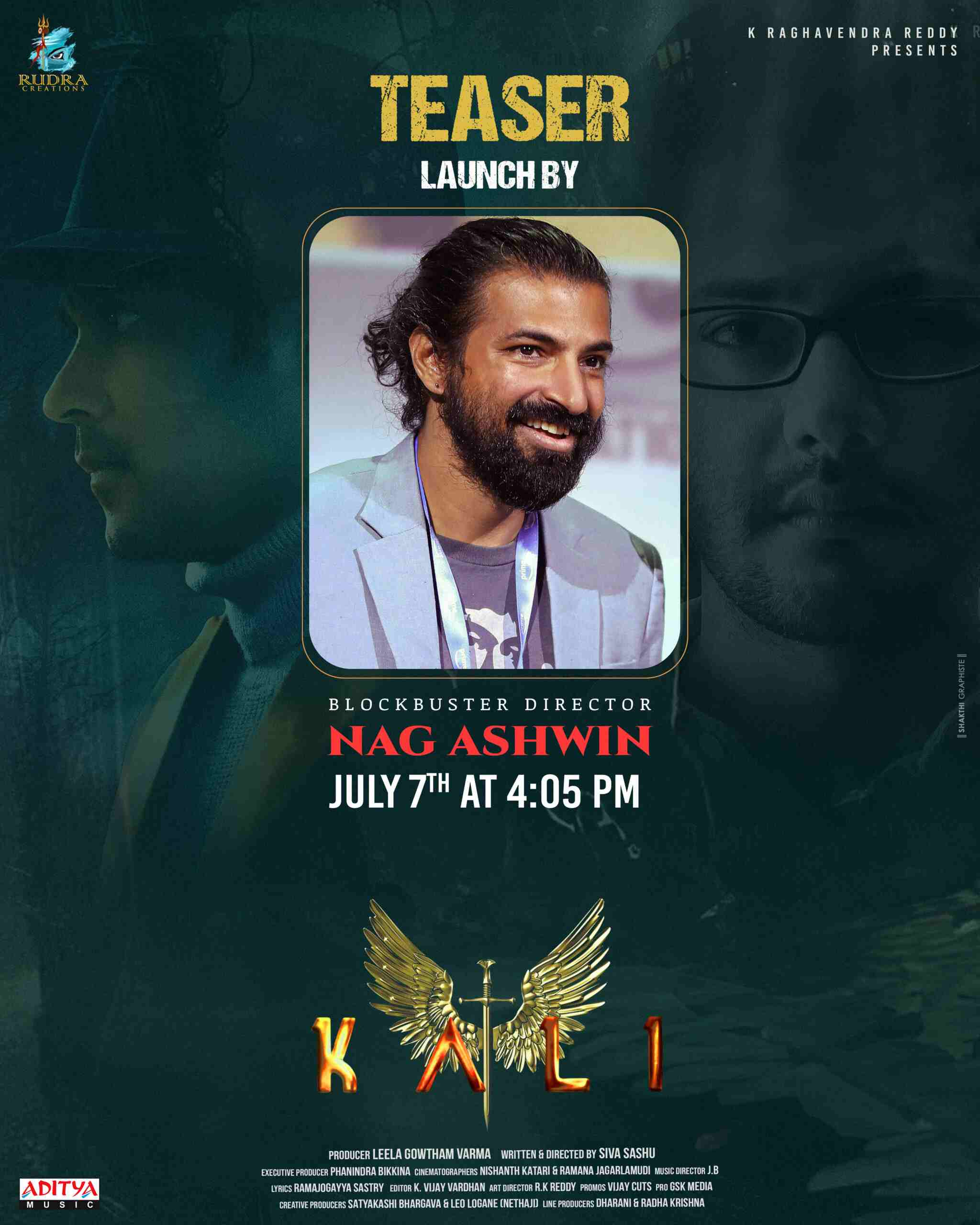 Blockbuster director Nag Ashwin will unveil the teaser of "Kali" tomorrow evening, on the 7th, at 4:05 PM. The movie's team promises a unique cinematic experience with its new plot revolving around the character of Kali.