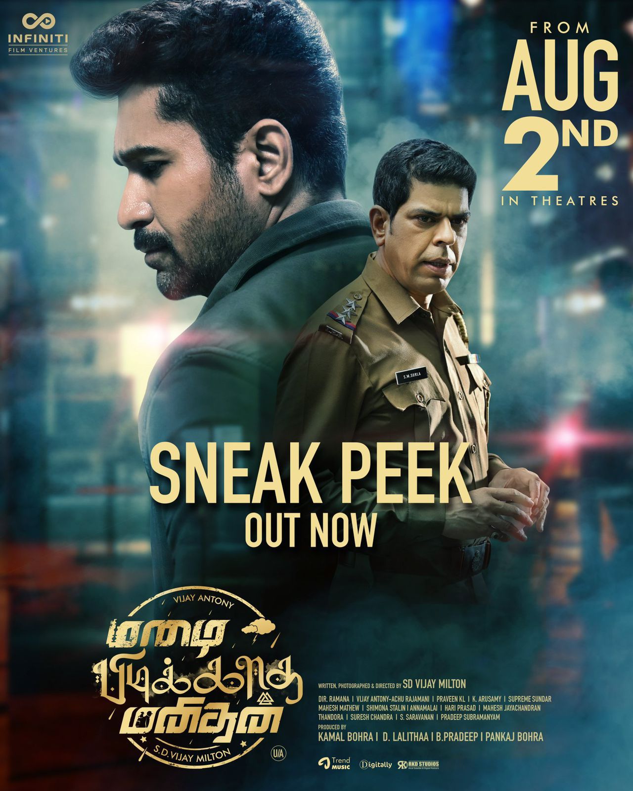 Hero Vijay Antony’s latest film, "Toofan," is set to make a grand theatrical debut on August 2nd. Produced by Kamal Bora, D. Lalitha, B. Pradeep, and Pankaj Bora under the Infinity Film Ventures banner—known for previous Vijay Antony projects such as Raghavan and Hathya—the film is directed by Vijay Milton in the poetic action entertainer genre.