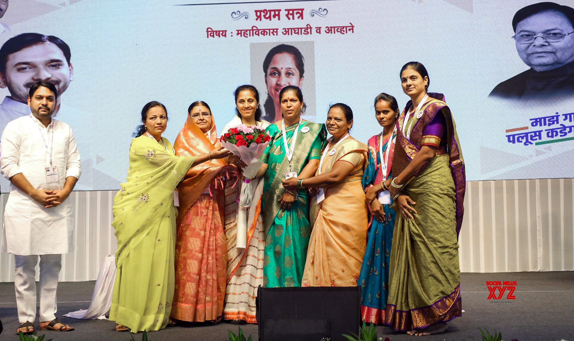 - Pune: Nationalist Congress Party Sharadchandra Pawar Working President Supriya Sule being greeted during the training camp organised at Bharti University, Pune on Sunday, September 29, 2024. (Photo: IANS)