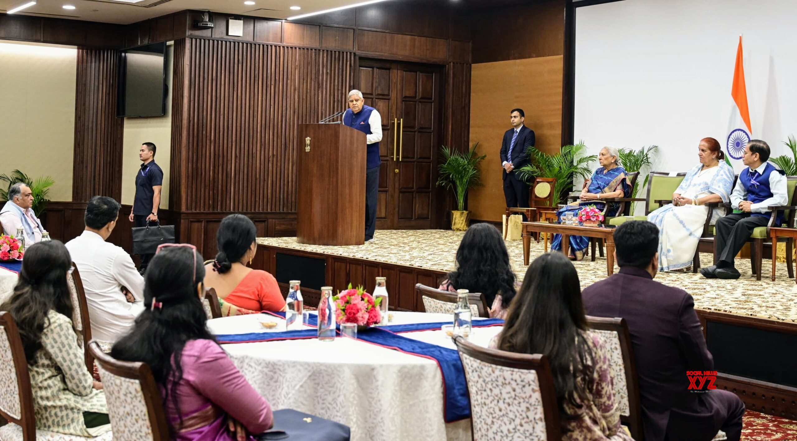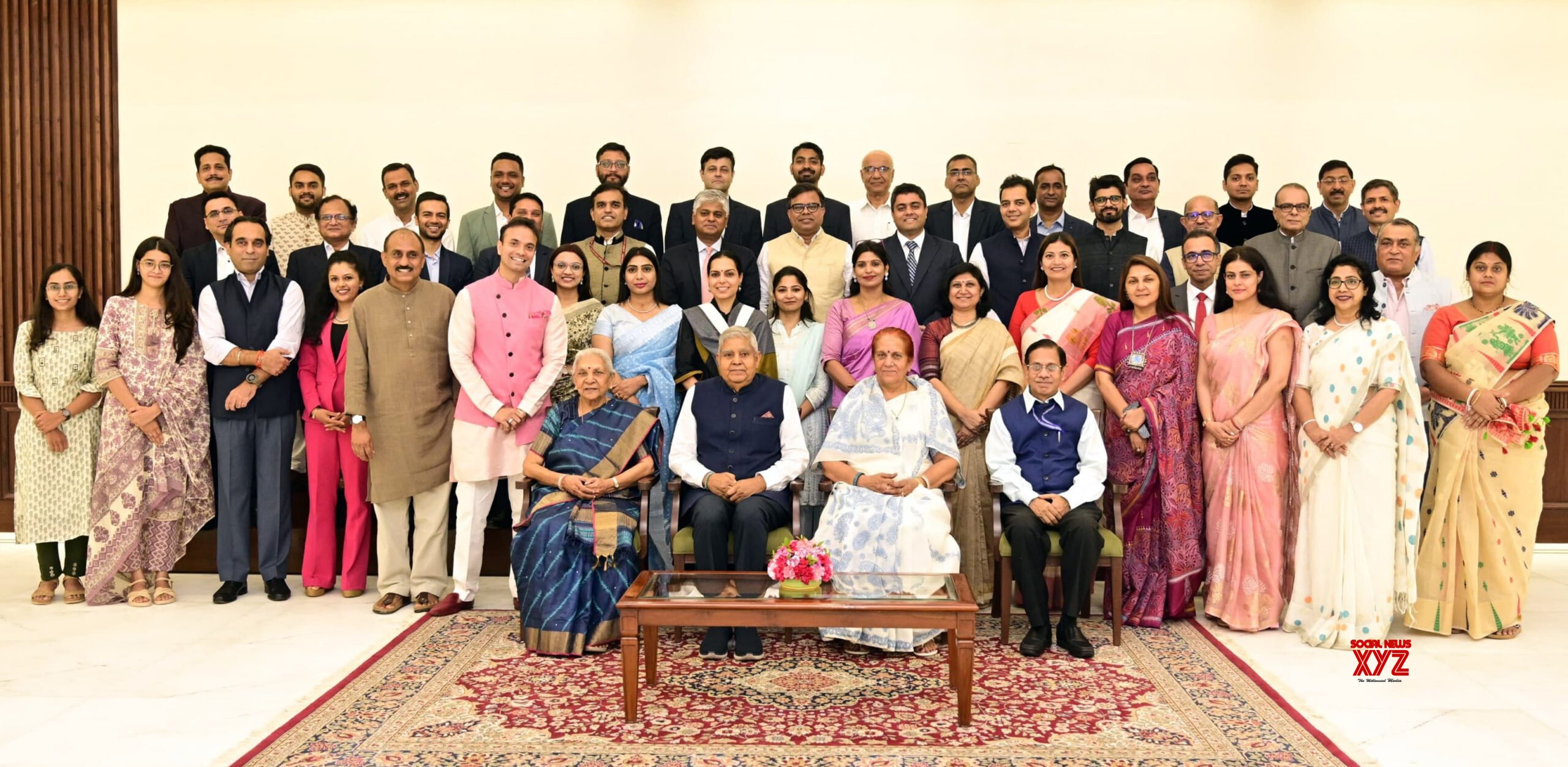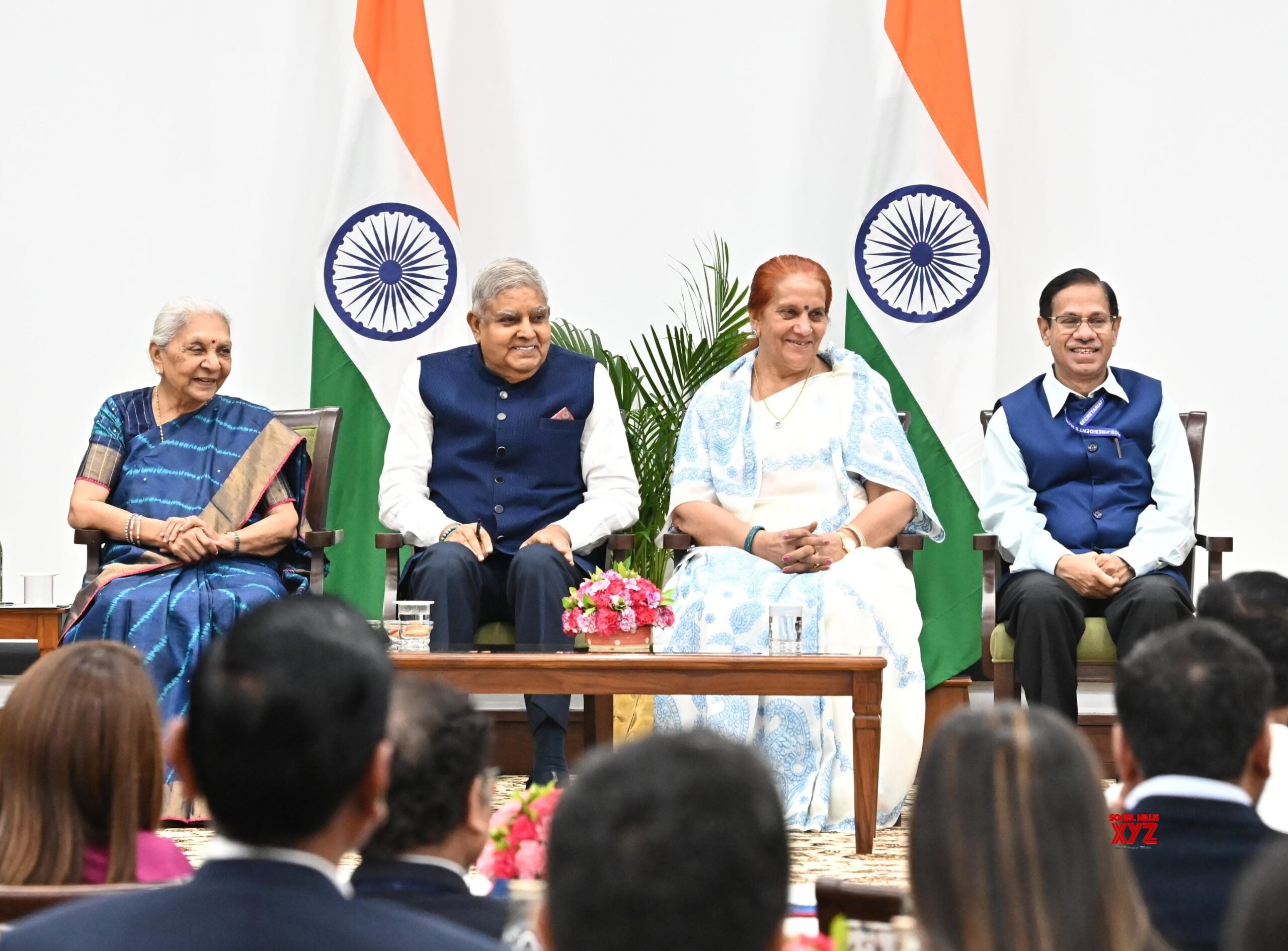 - New Delhi: Vice-President Jagdeep Dhankhar, along with Sudesh Dhankhar and other dignitaries, during an interaction session with philanthropists and beneficiaries associated with ‘YUVA Unstoppable’ at the Vice-President’s Enclave in New Delhi on Monday, September 30, 2024. (Photo: IANS)
