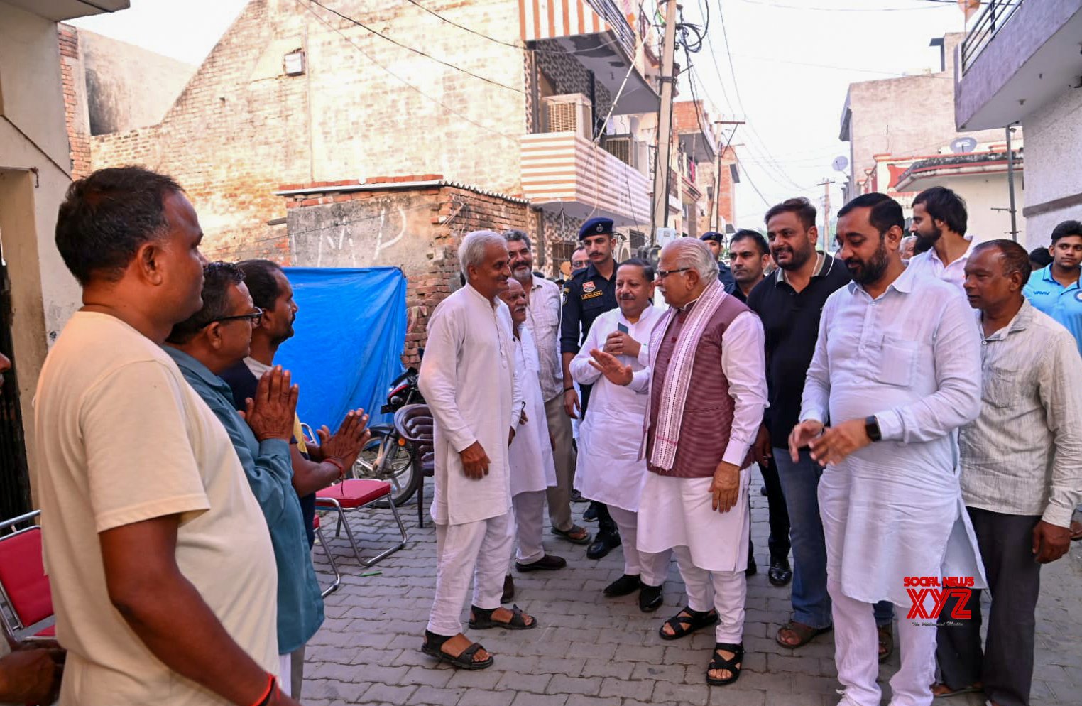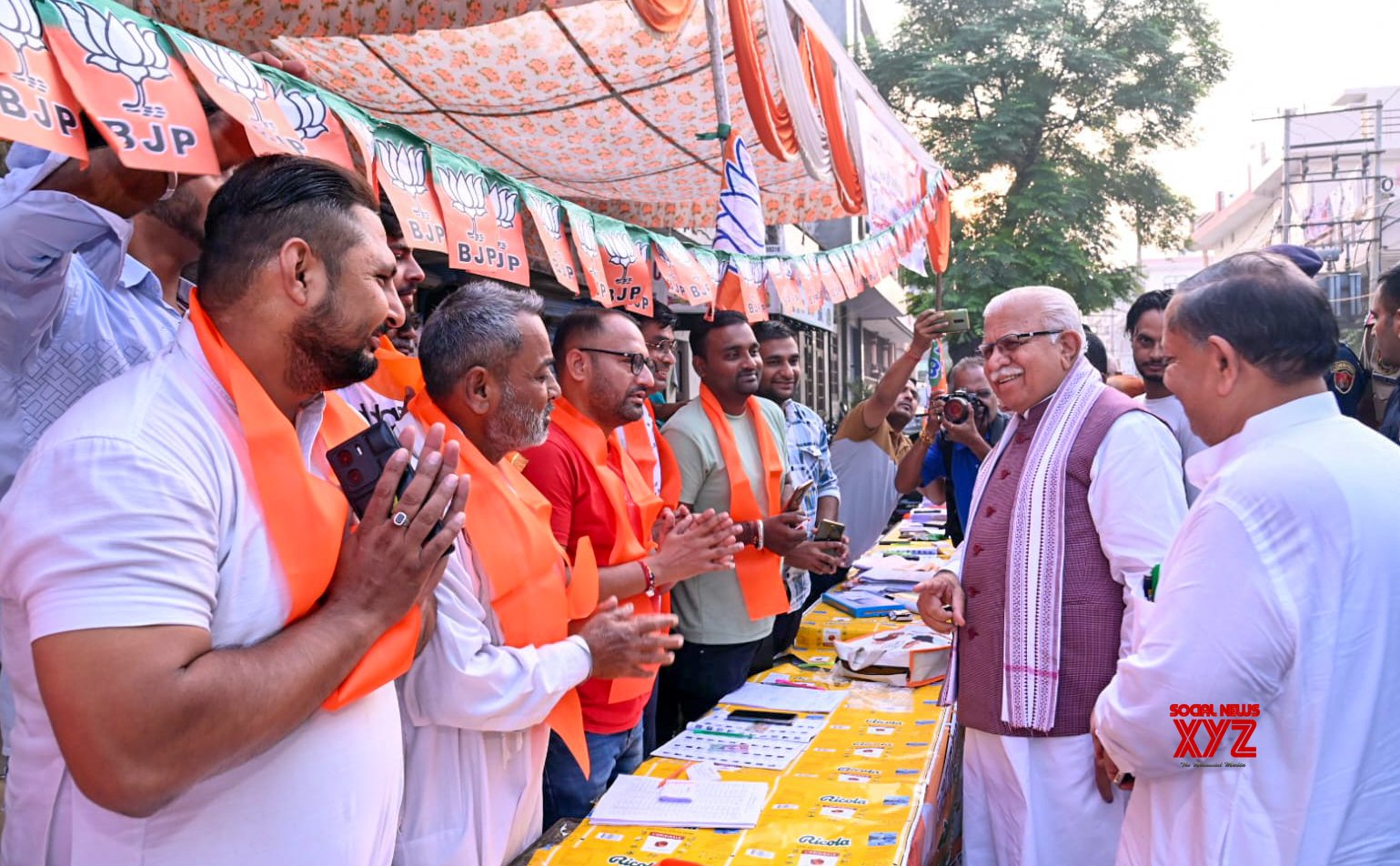 - Karnal: Union Minister of Housing and Urban Affairs & Power, Manohar Lal Khattar, interacts with the booth workers of Nilokheri and Gharaunda assembly constituencies during the Haryana assembly election in Karnal on Saturday, October 05, 2024. (Photo: IANS)