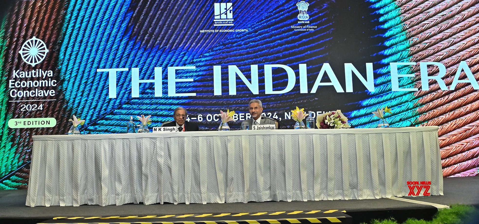 - New Delhi: External Affairs Minister S. Jaishankar with N. K. Singh, Chairman of the 15th Finance Commission, at the 3rd Kautilya Economic Conclave in New Delhi on Sunday, October 6, 2024. (Photo: IANS)