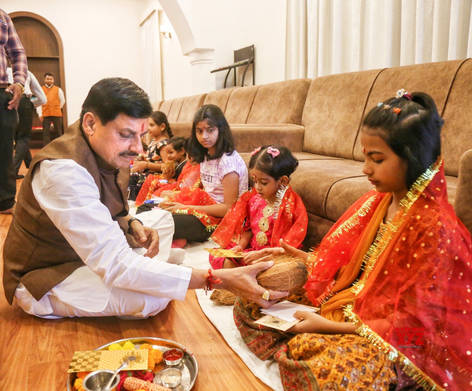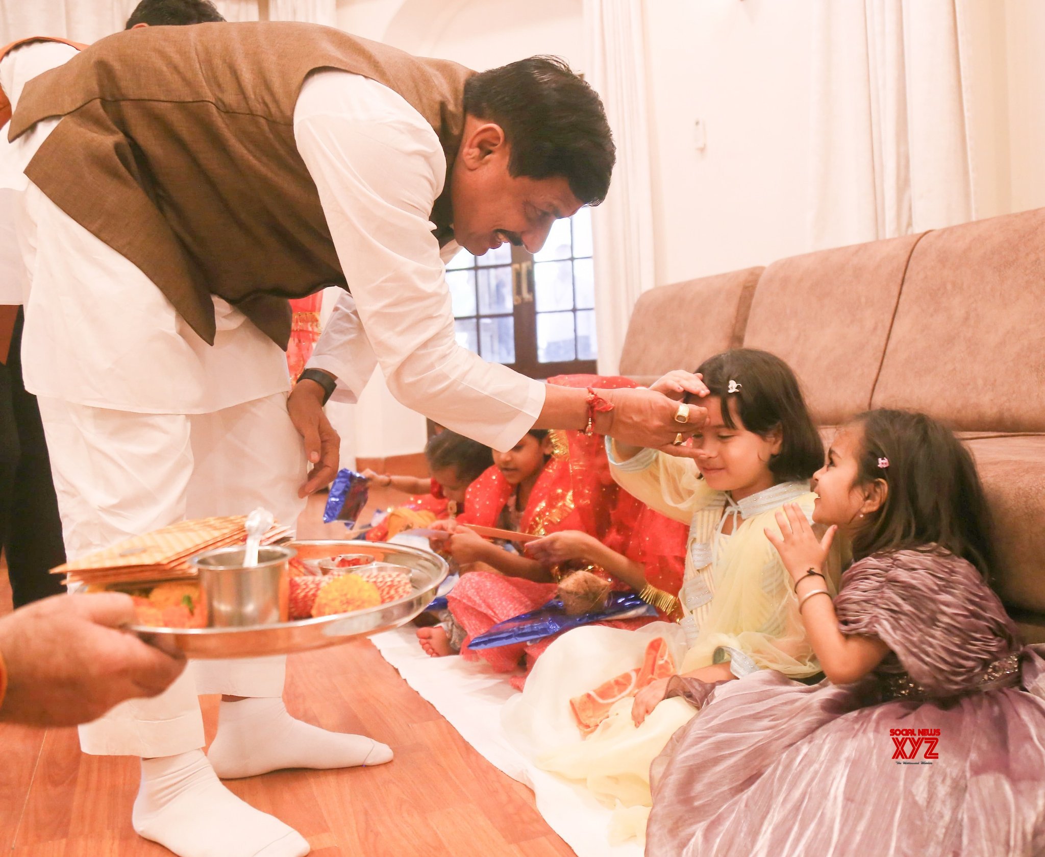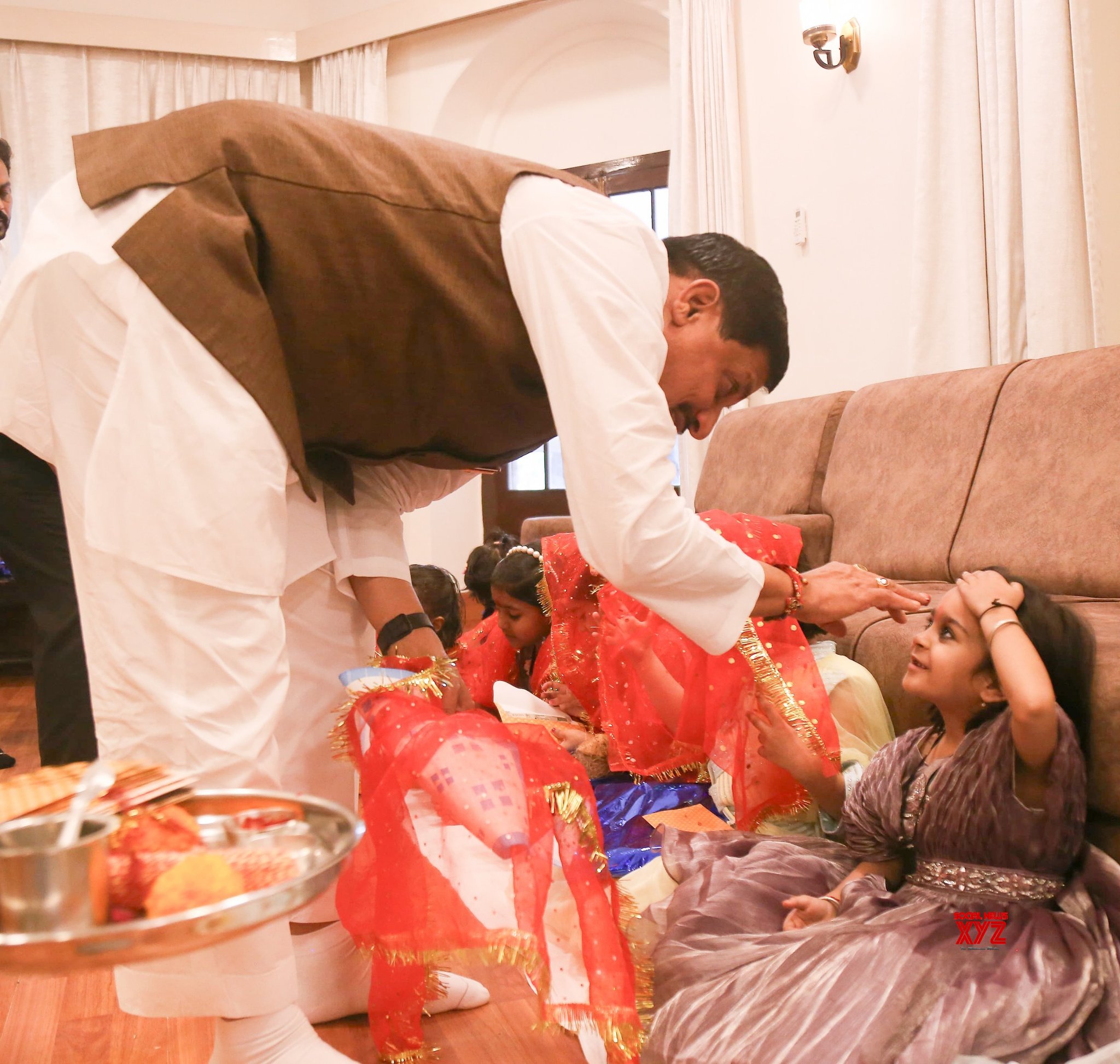 - Bhopal: Chief Minister Mohan Yadav performs Kanya Puja at the Chief Minister’s residence on the occasion of Mahanavami during Shardiya Navratri in Bhopal on Friday, October 11, 2024. (Photo: IANS)