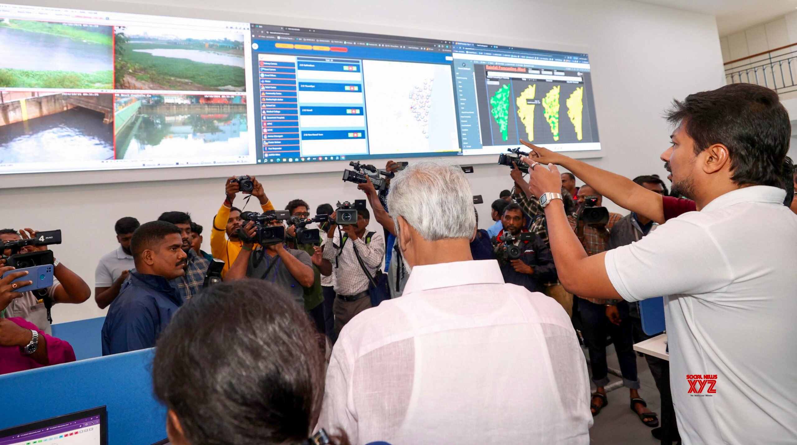 - Chennai: Tamil Nadu Deputy Chief Minister Udhayanidhi Stalin conducts an inspection at the integrated control room set up at the Greater Chennai Corporation as heavy rains hit the city in Chennai on Tuesday, October 15, 2024. (Photo: IANS)