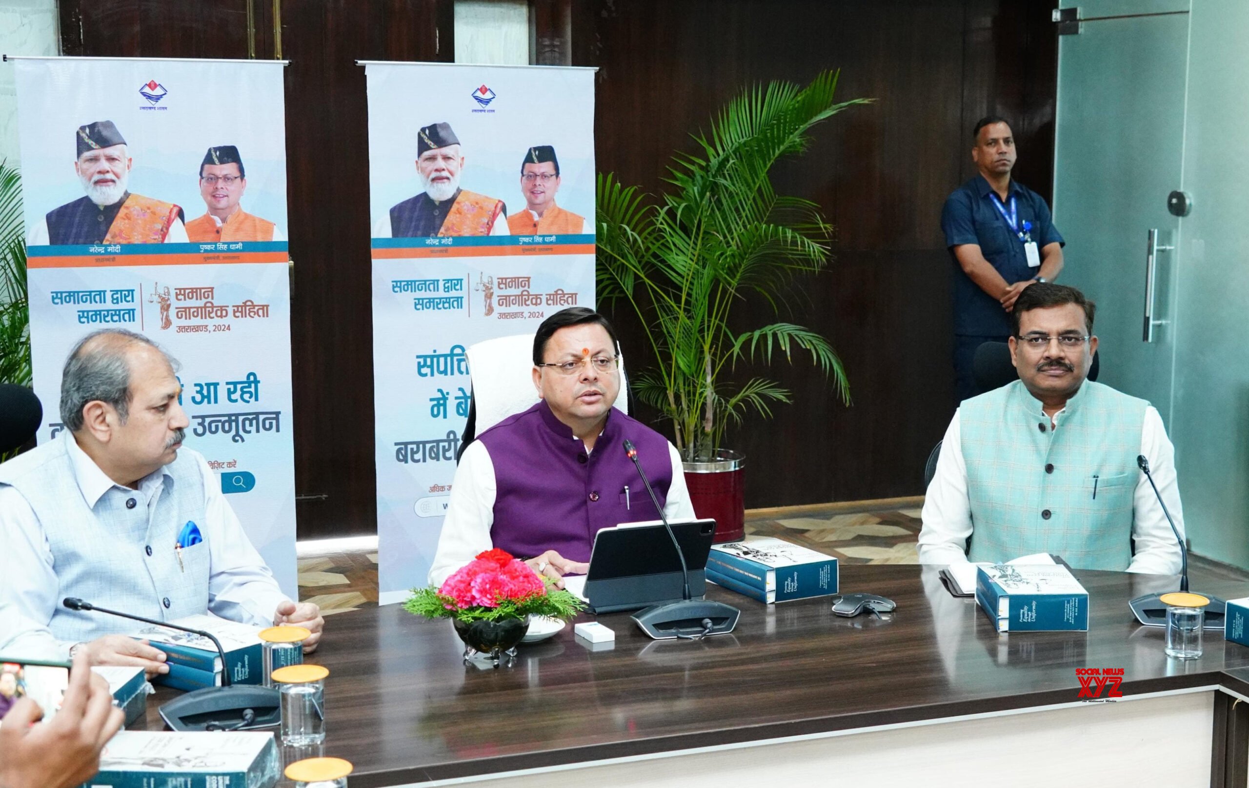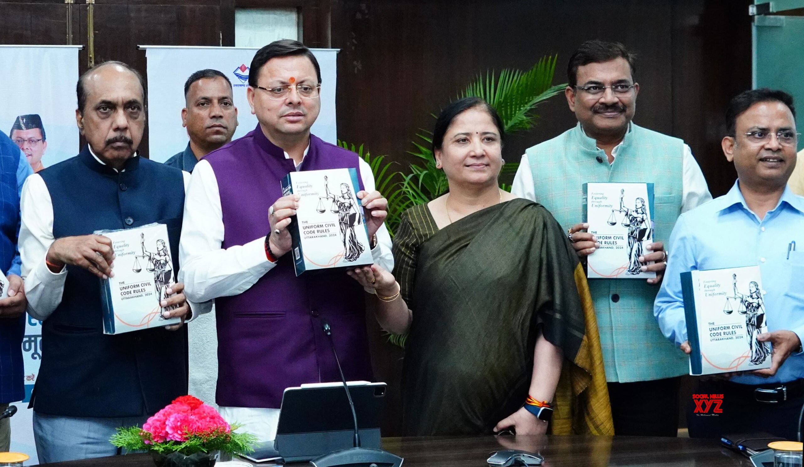 - Dehradun: Uttarakhand Chief Minister Pushkar Singh Dhami receives draft of the rules prepared by the committee constituted to implement Uniform Civil Code in the state in Dehradun at the secretariat in Dehradun on Friday, October 18, 2024. (Photo: IANS)