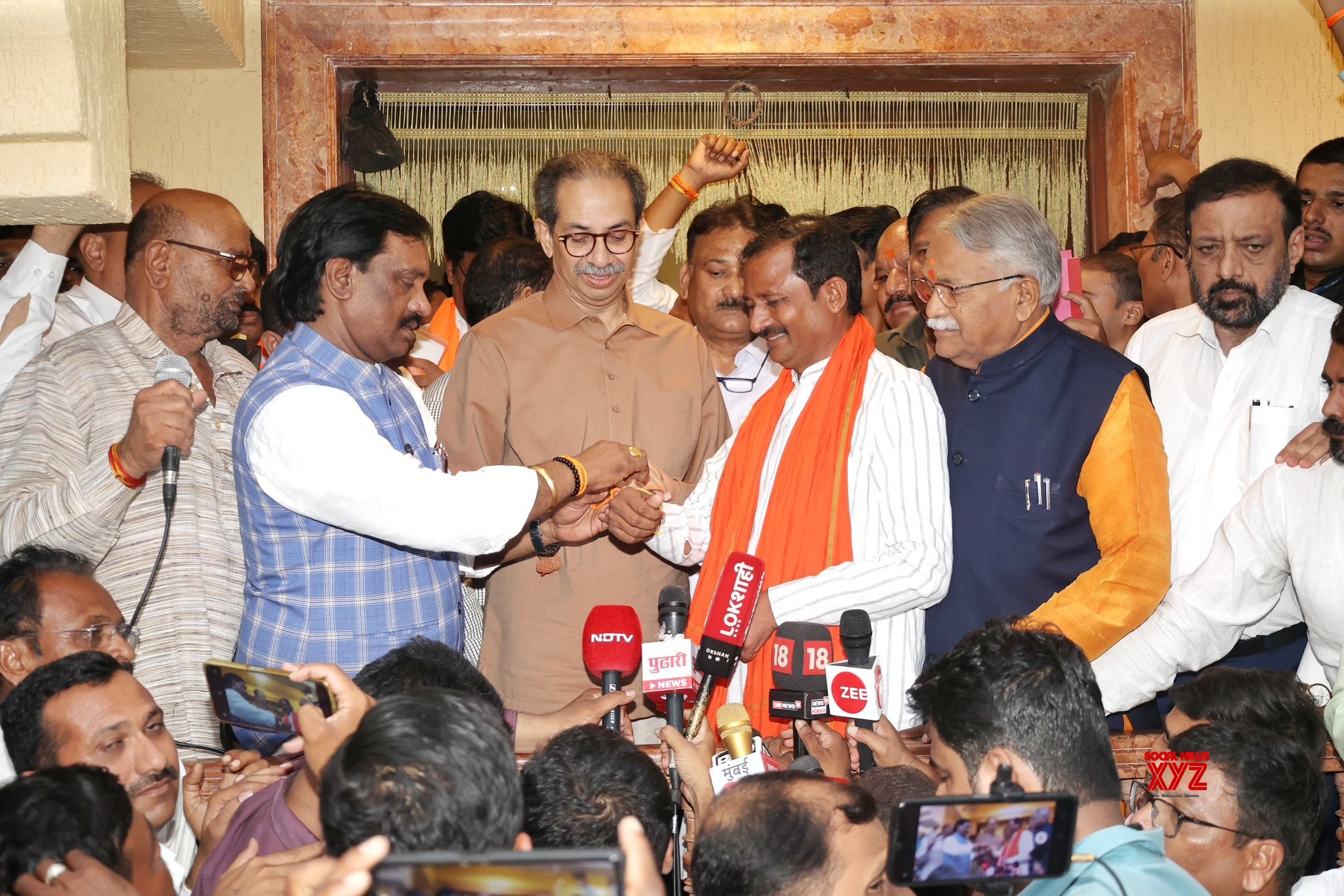 - Mumbai: BJP State Secretary Suresh Bankar, along with his colleagues from the Sillod Legislative Assembly, joins Shiv Sena (Uddhav Balasaheb Thackeray) in the presence of party chief Uddhav Thackeray in Mumbai on Friday, October 18, 2024. (Photo: IANS)
