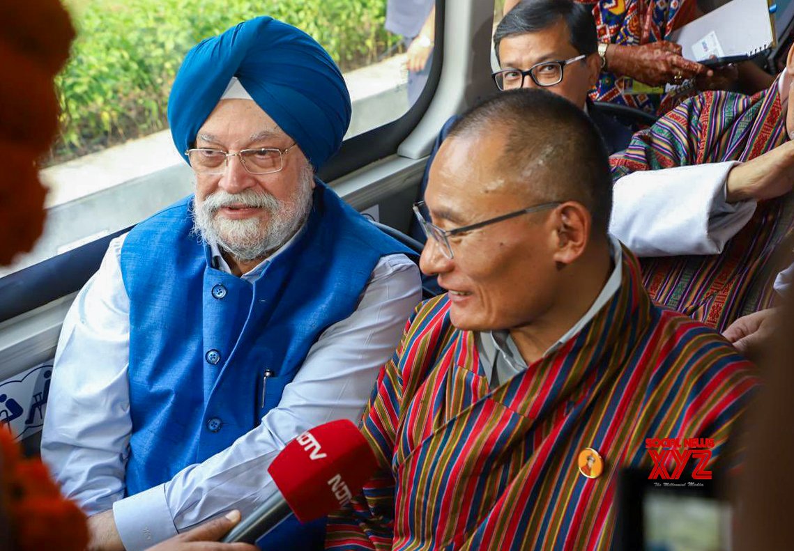 - New Delhi: Union Minister Hardeep Singh Puri along with Bhutan Prime Minister Tshering Tobgay take a ride on the Hydrogen bus, in New Delhi on Monday, October 21, 2024. (Photo: IANS)
