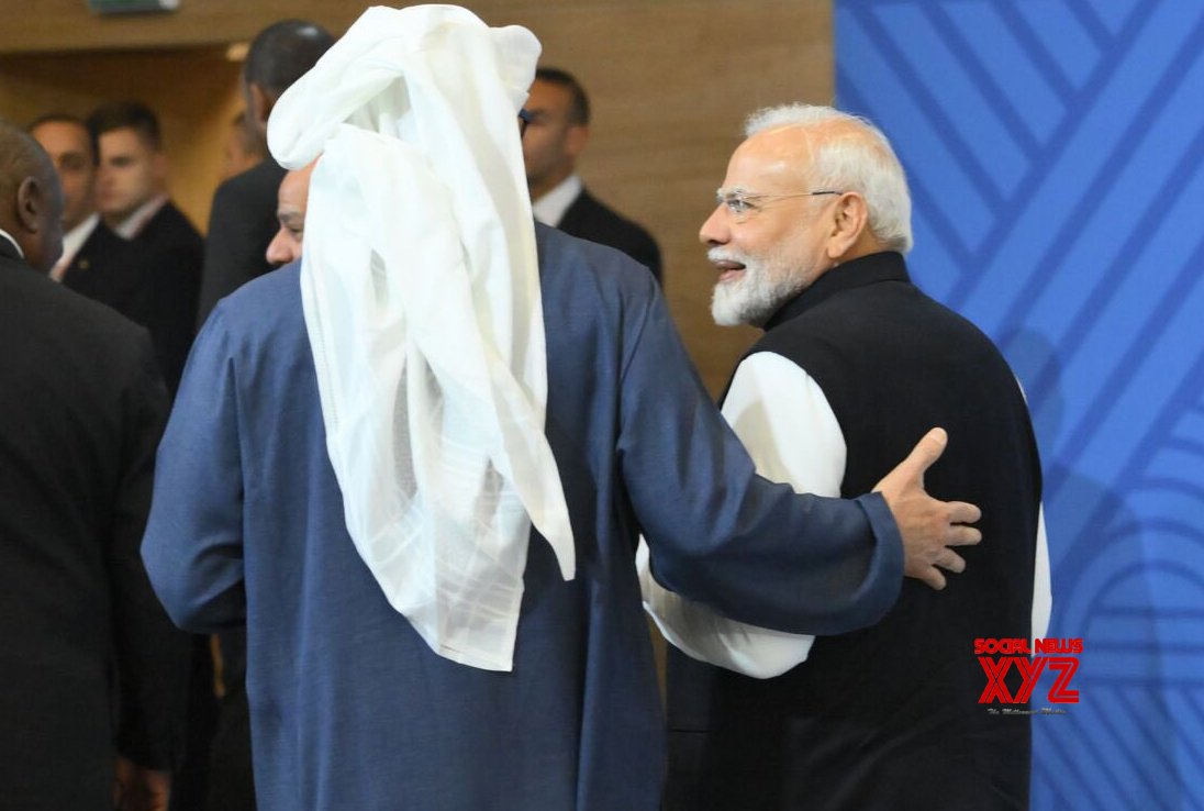 - Kazan : Prime Minister Narendra Modi and UAE’s President Sheikh Mohamed bin Zayed Al Nahyan interact during the BRICS family photo, at Kazan Expo Center, BRICS Summit venue, in Kazan on Wednesday, October 23, 2024. (Photo: IANS)