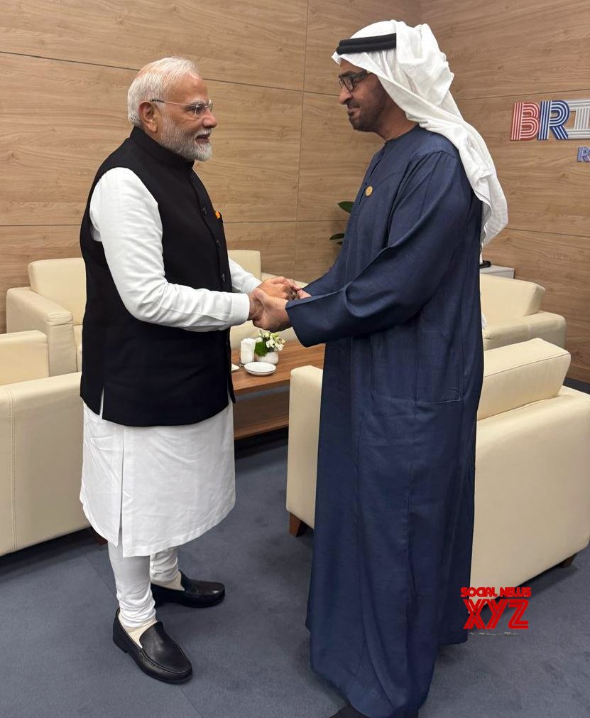 - Kazan : Prime Minister Narendra Modi and UAE’s President Sheikh Mohamed bin Zayed Al Nahyan interact on the sidelines of the BRICS Summit , at Kazan Expo Center, BRICS Summit venue, in Kazan on Wednesday, October 23, 2024. (Photo: IANS)