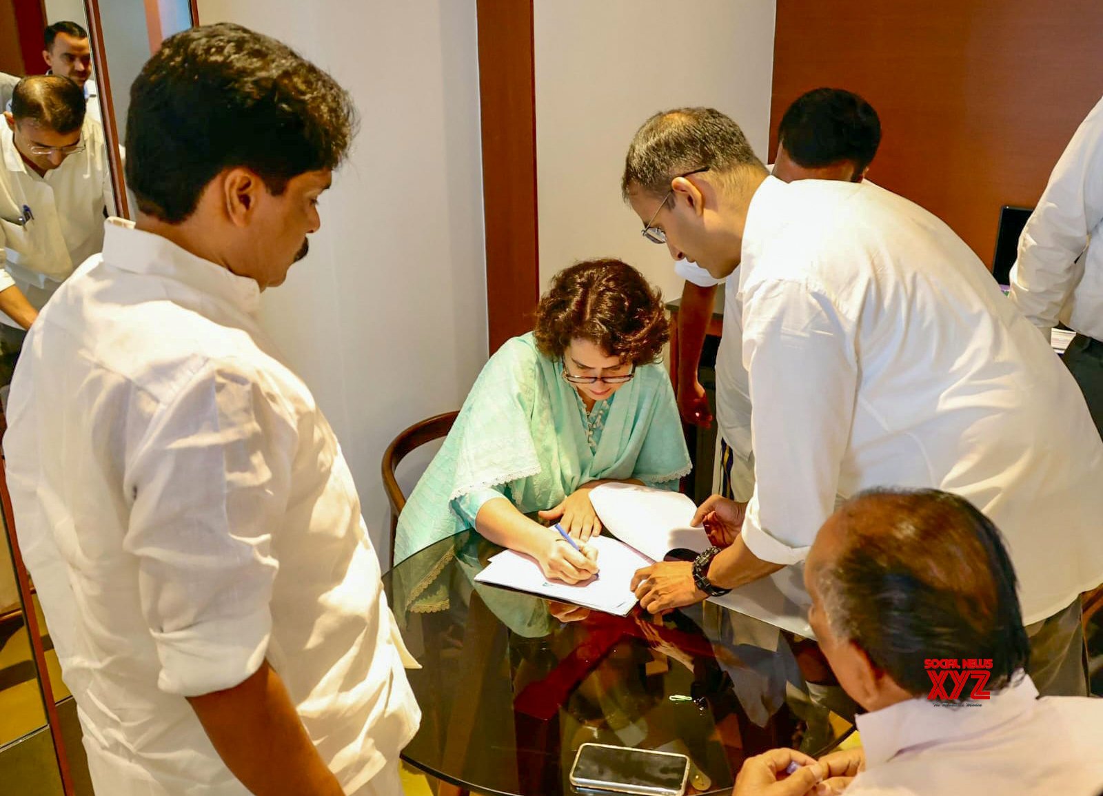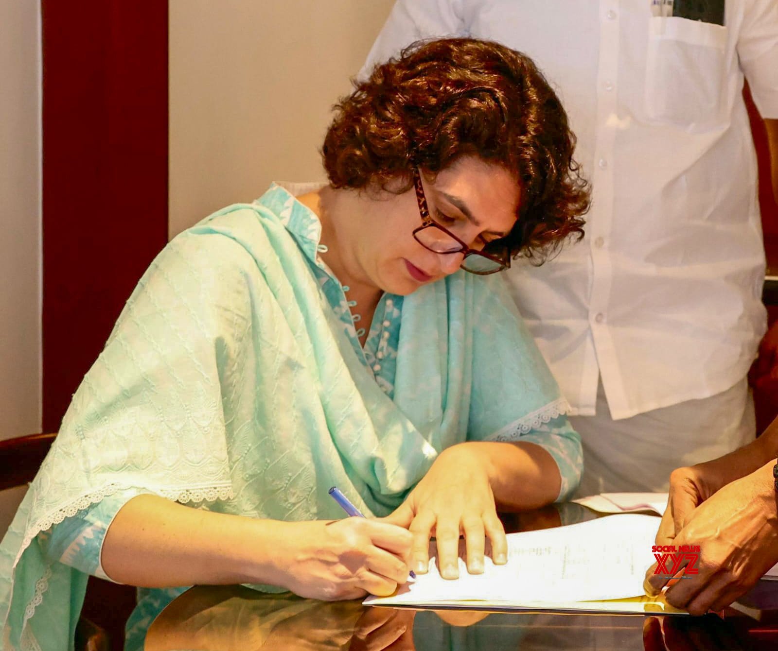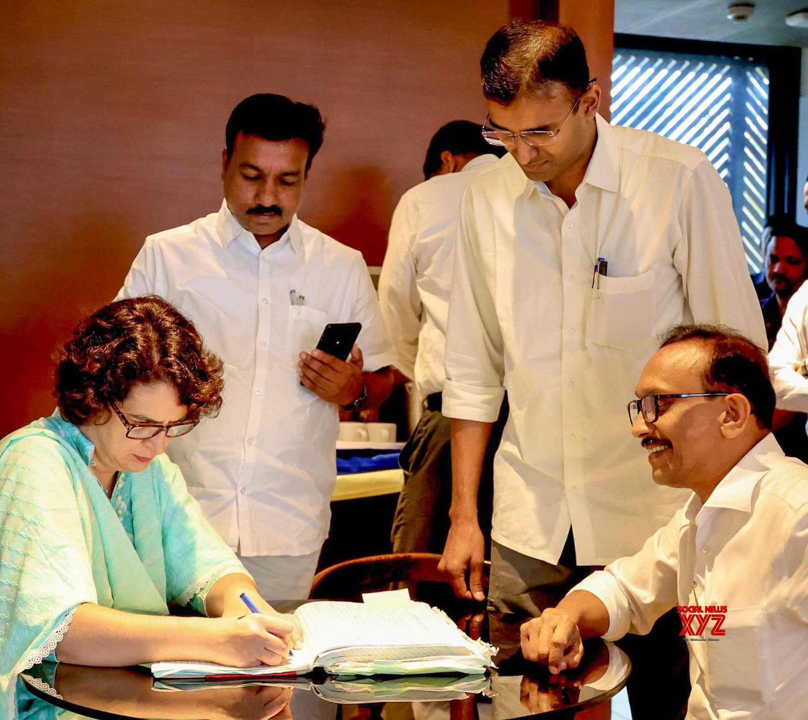 - New Delhi: Congress candidate for the Wayanad Lok Sabha by-elections, Priyanka Gandhi Vadra, officially signs her nomination papers in the presence of local leaders for Wayanad bye-elections in New Delhi on Wednesday, October 23, 2024. (Photo: IANS)