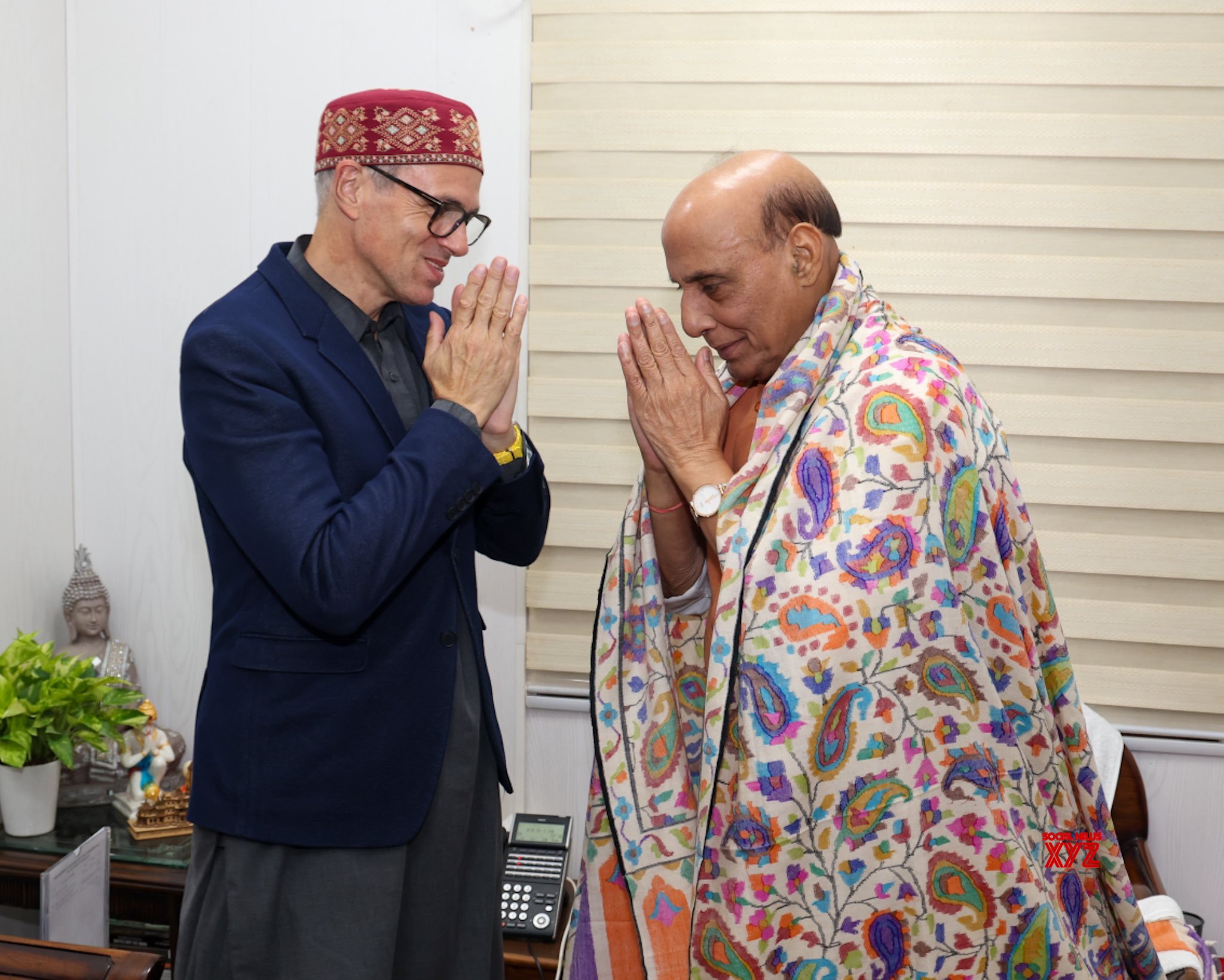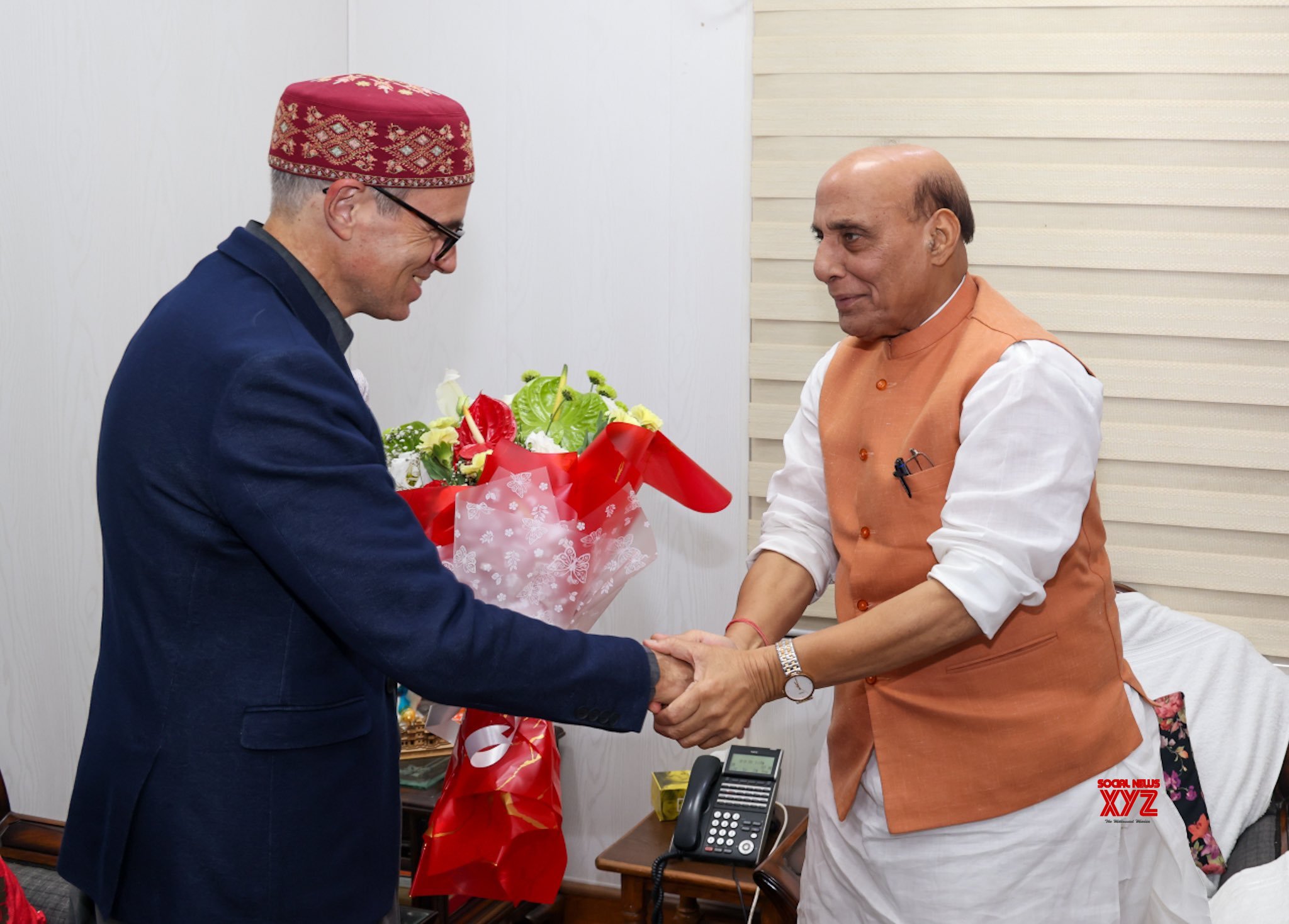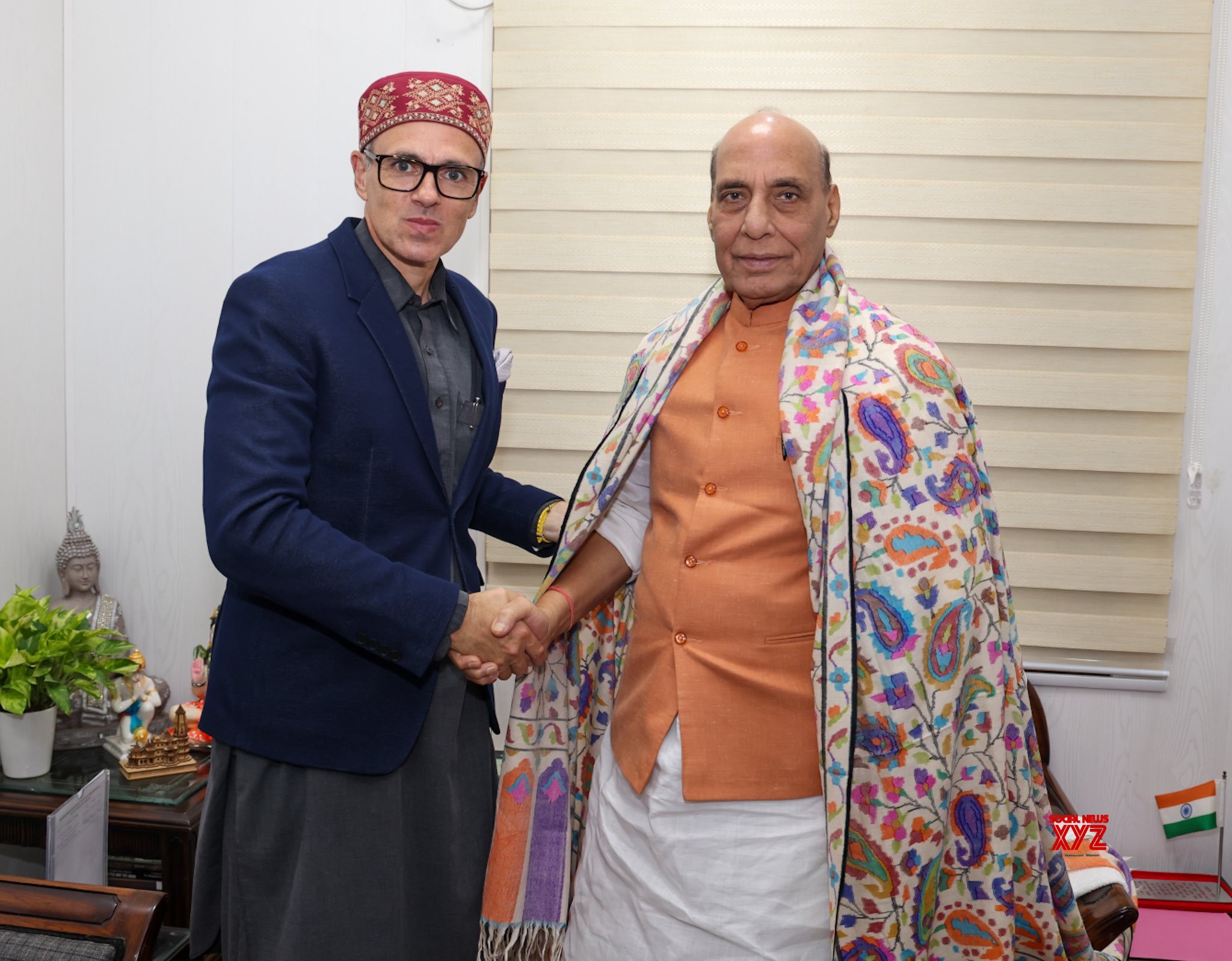 - New Delhi: Defence Minister Rajnath Singh meets Jammu and Kashmir Chief Minister Omar Abdullah in New Delhi on Thursday, October 24, 2024. (Photo: IANS)