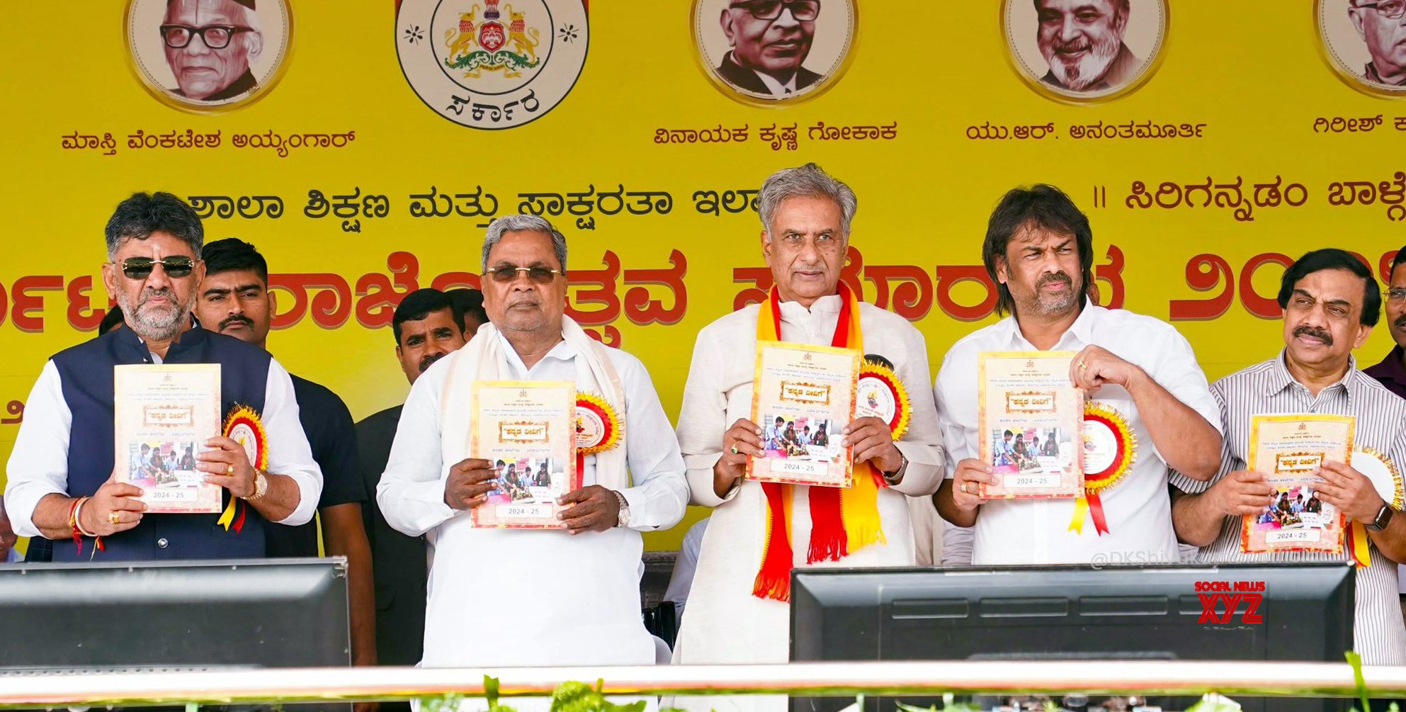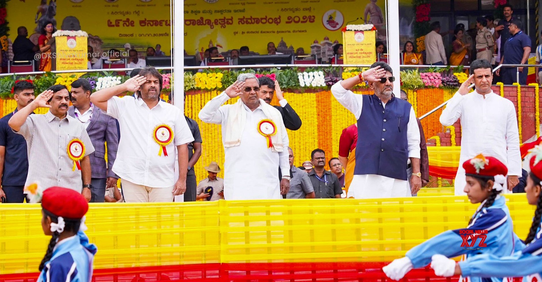 - Bengaluru: Karnataka Chief Minister Siddaramaiah, Deputy Chief Minister DK Shivakumar, during the Kannada Rajyotsava program organized at Kantheerava Stadium in Bengaluru on Friday, November 01, 2024. (Photo: IANS)