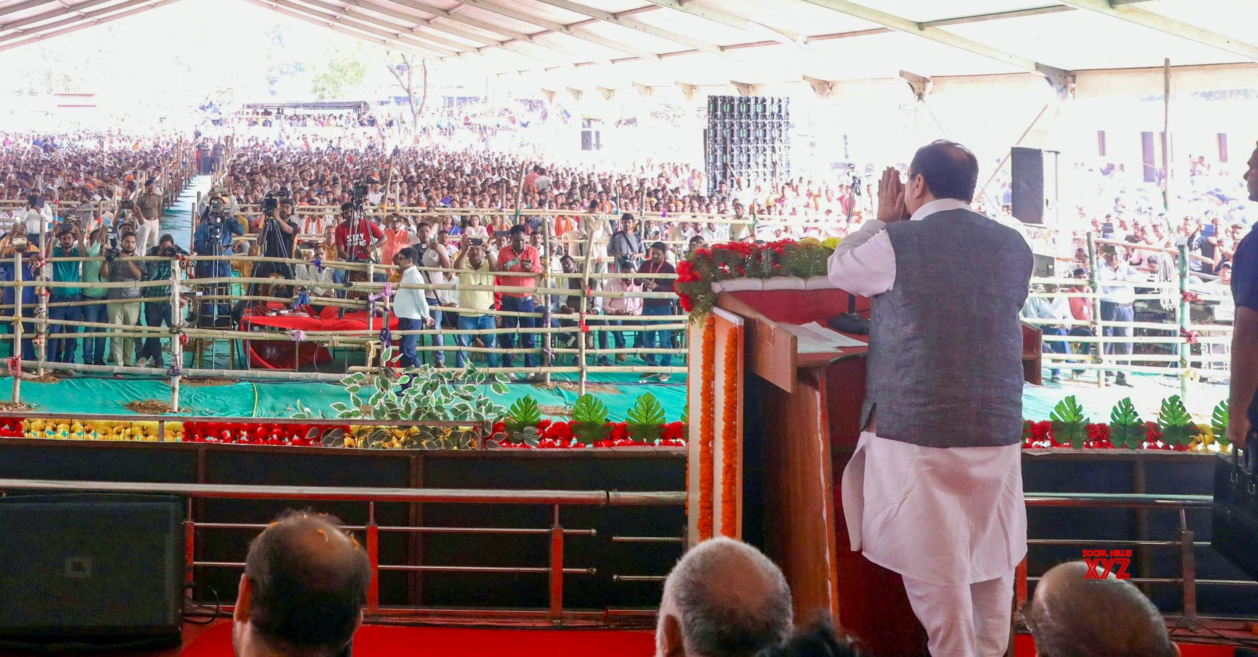 - Palamu: Union Minister and BJP National President JP Nadda addresses an election campaign ahead of Jharkhand assembly election at Vishrampur Assembly constituency in Palamu, Jharkhand on Saturday November 09, 2024. (Photo: IANS)