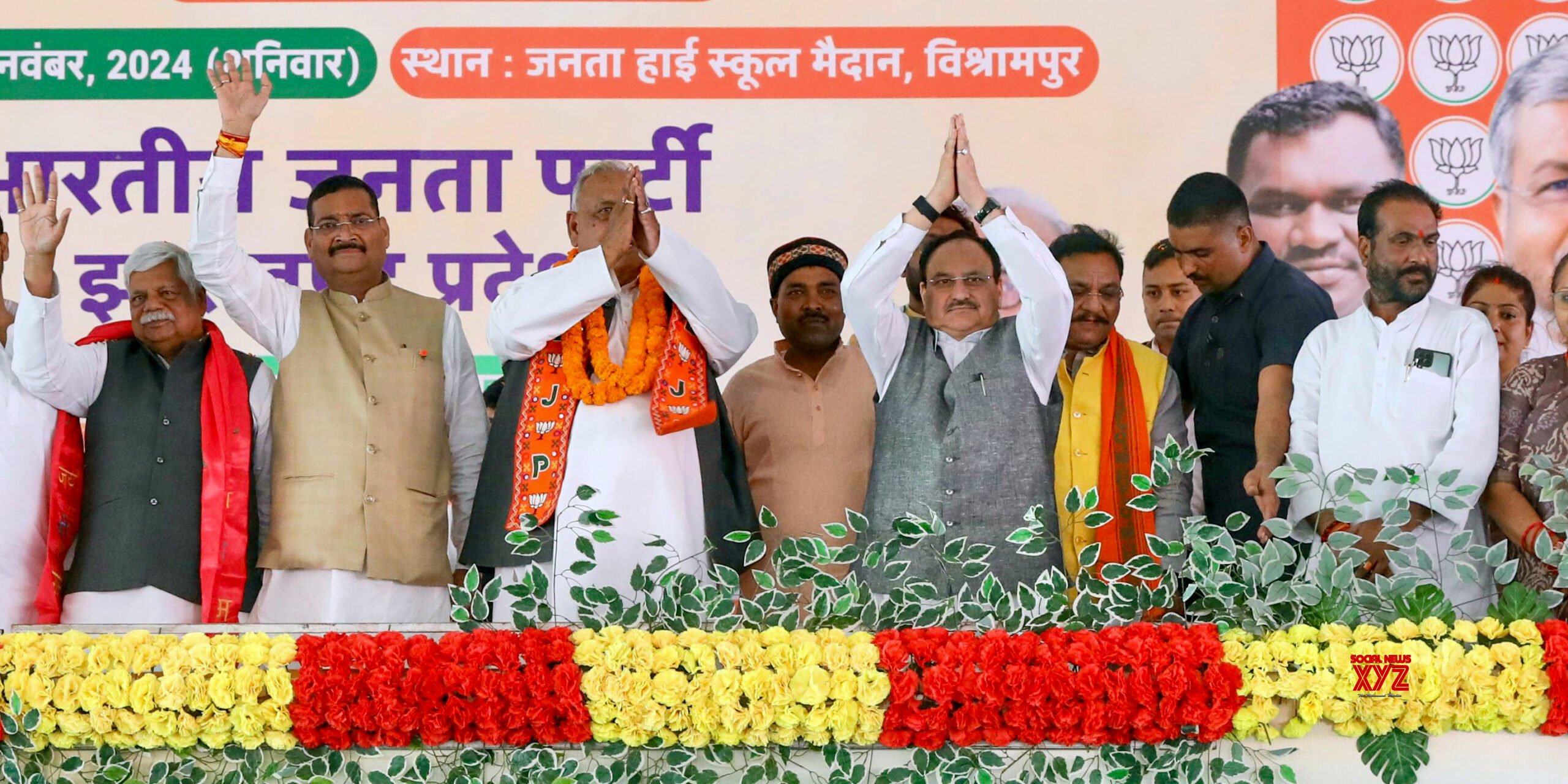 - Palamu: Union Minister and BJP National President JP Nadda attends an election campaign ahead of Jharkhand assembly election at Vishrampur Assembly constituency in Palamu, Jharkhand on Saturday November 09, 2024. (Photo: IANS)