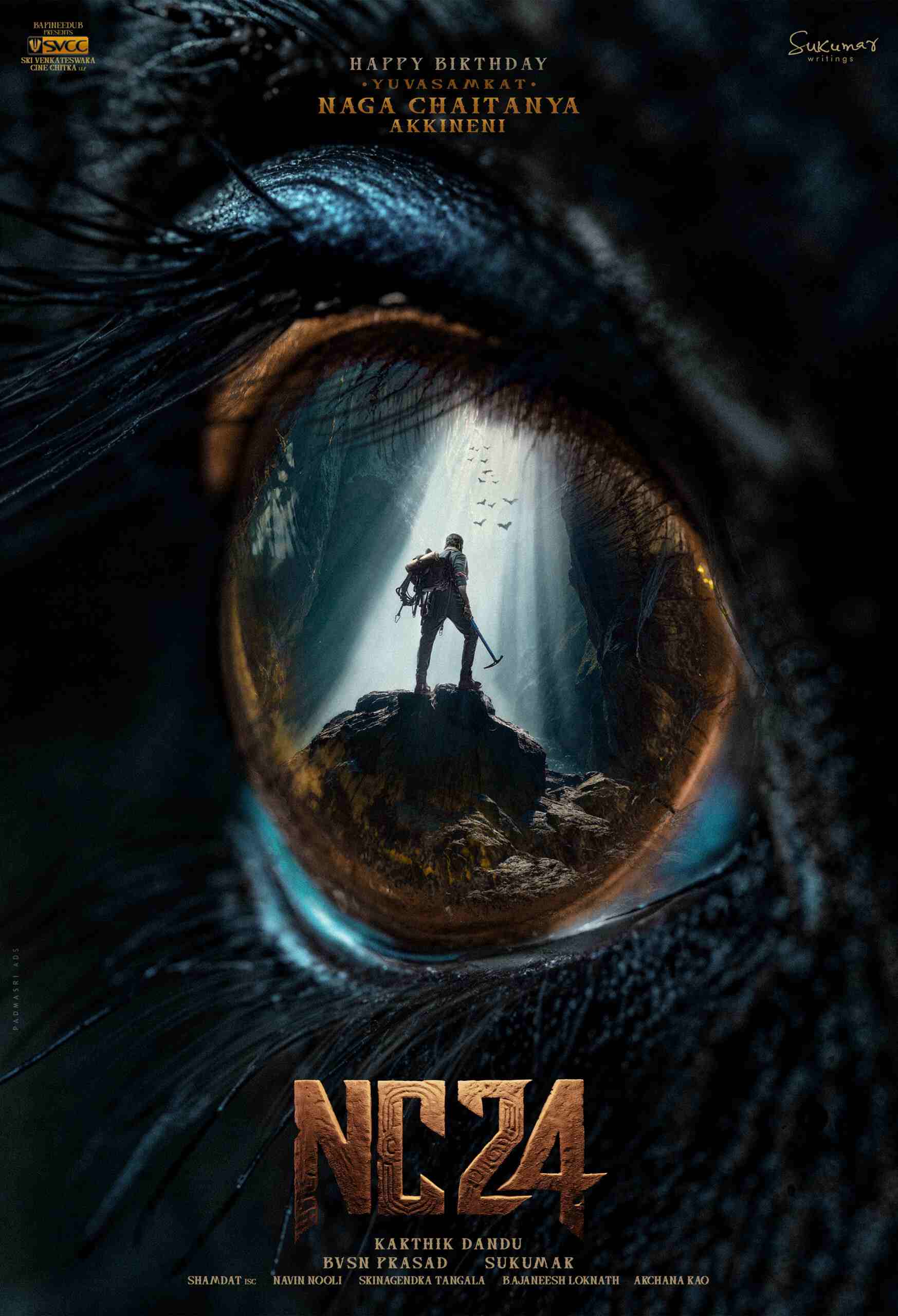 The poster showcases a Weird eye with the protagonist seen standing on a rock with rock climbing tools in his back. This visually captivating poster has taken everyone by surprise. The makers also announced that the film’s shoot will begin in December. Tentatively titled NC24, the film is co-produced by the creative genius Sukumar and will be made on a huge budget with top-notch production values.