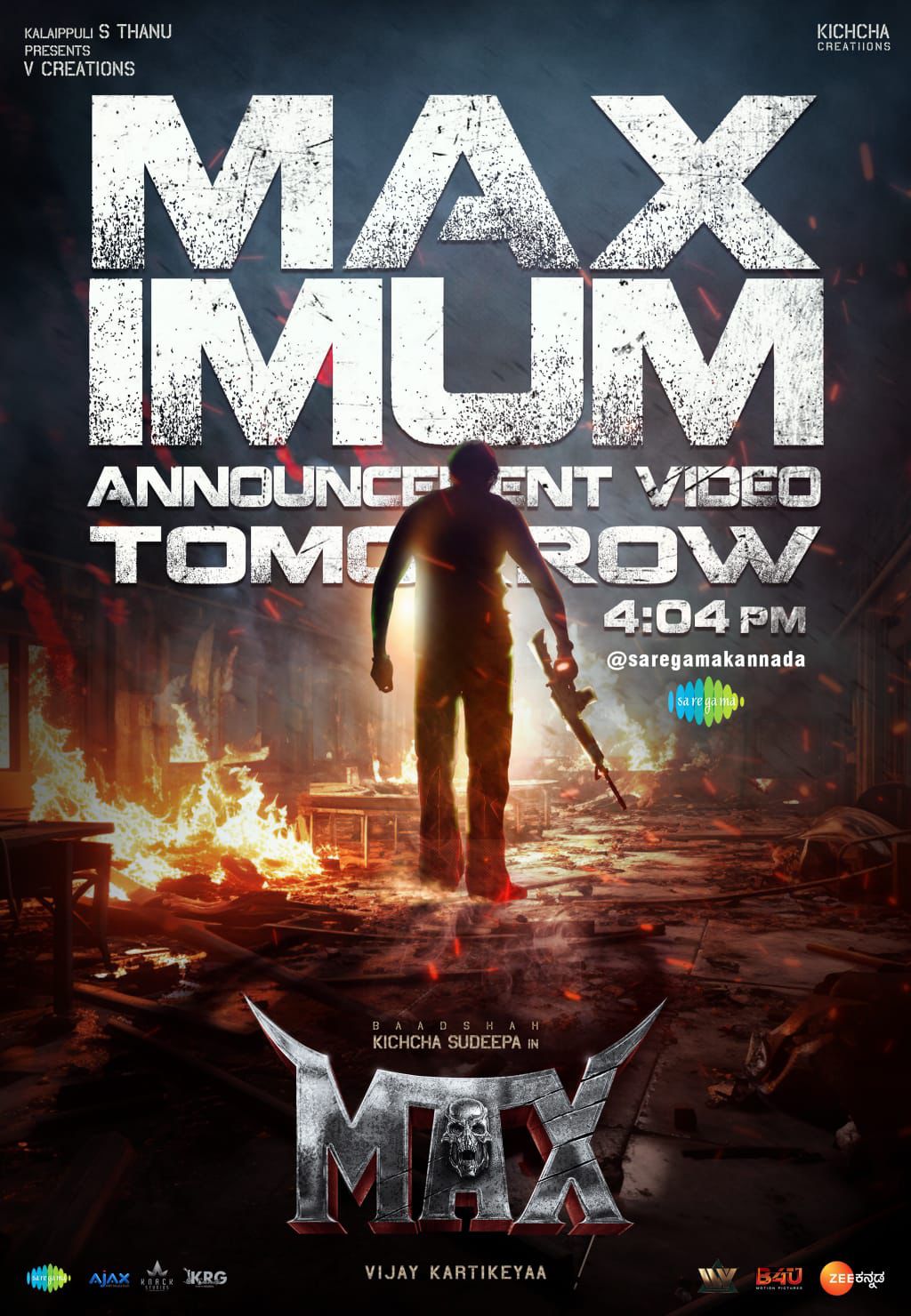 Kichcha Sudeep plays a powerful police officer named Arjun Mahakshay in Max. The title, poster, and lyrical songs of the film, which have already been released, have generated a huge response from audiences. High expectations are building for the release of Max in both Kannada and Telugu.