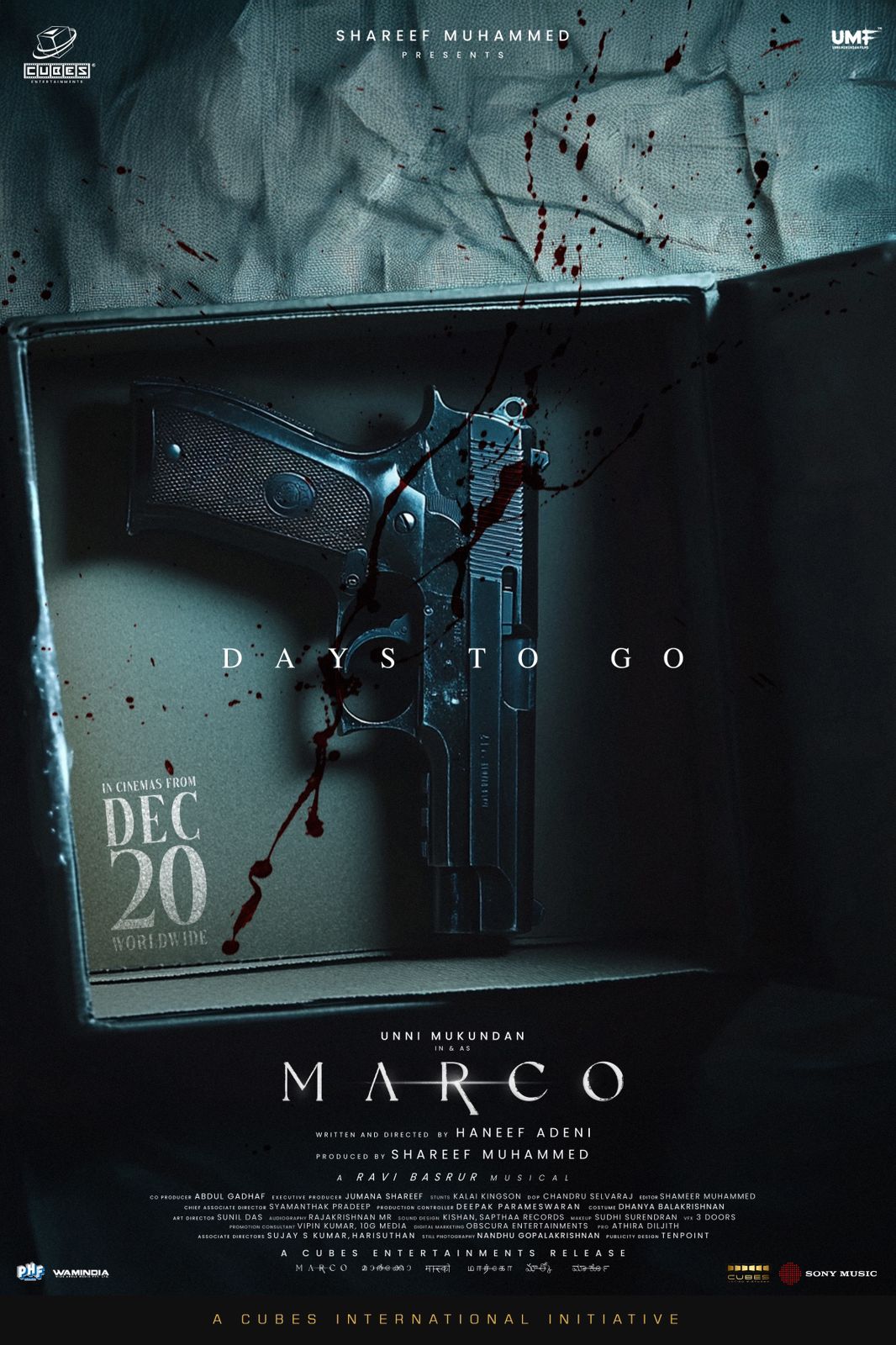 Marco is produced by Sharif Mohammad under the banner of Cubes Entertainments and Unni Mukundan Films. The film is directed by Haneef Adeni, who is known for his exceptional storytelling skills.