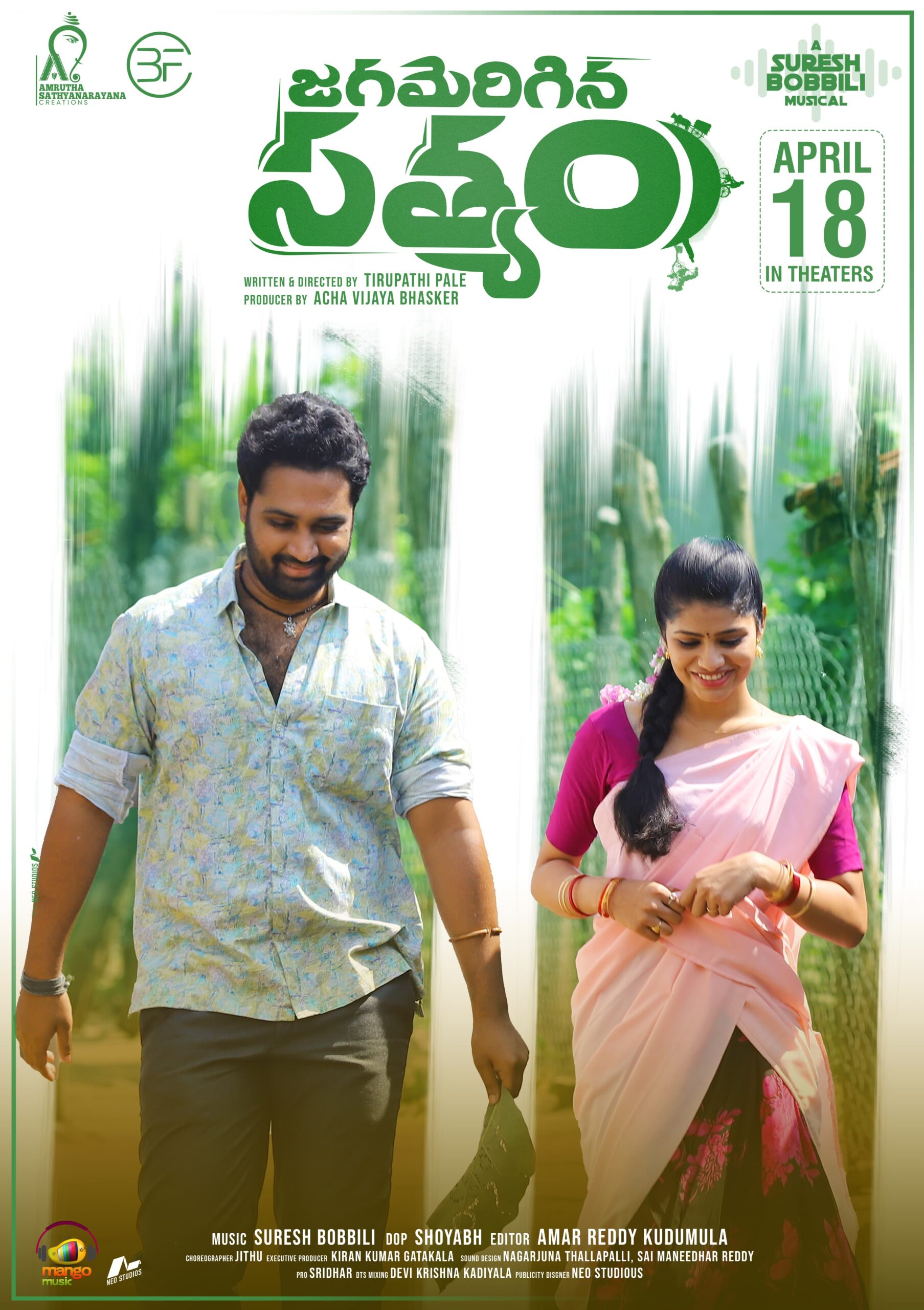 Jagamerigina Satyam is a film produced by Amrutha Satyanarayana Creations Production No. 1. This film is directed by Tirupati Pale. Starring Avinash Varma, Adhya Reddy, and Neelima as the hero and heroines, the film has completed its shooting and post-production and is going to be released in theaters on April 18.