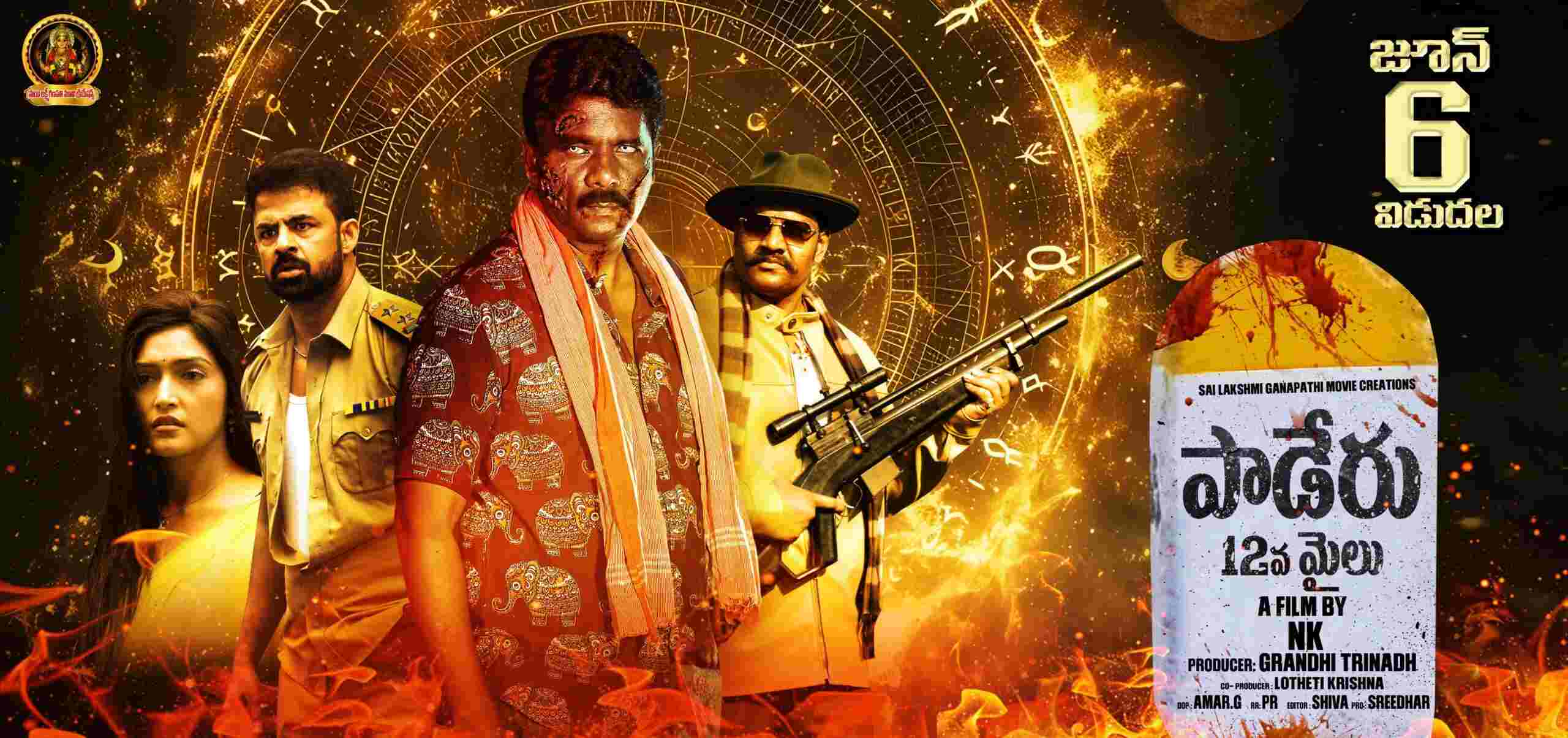 Backed by the blessings of Paderu’s local deity Sri Modakondamma, Padaru 12th Mile is produced by Grandhi Trinadh under the Sai Lakshmi Ganapathi Movie Creations banner. Directed by N.K., the film stars Satyam Rajesh, Shravan, Kalakeya Prabhakar, Mukesh Gupta, and newcomer Suhana as the female lead. Co-produced by Lotheti Krishna, the music is composed by PR, with cinematography by G. Amar and editing by Shiva Sharvani.
