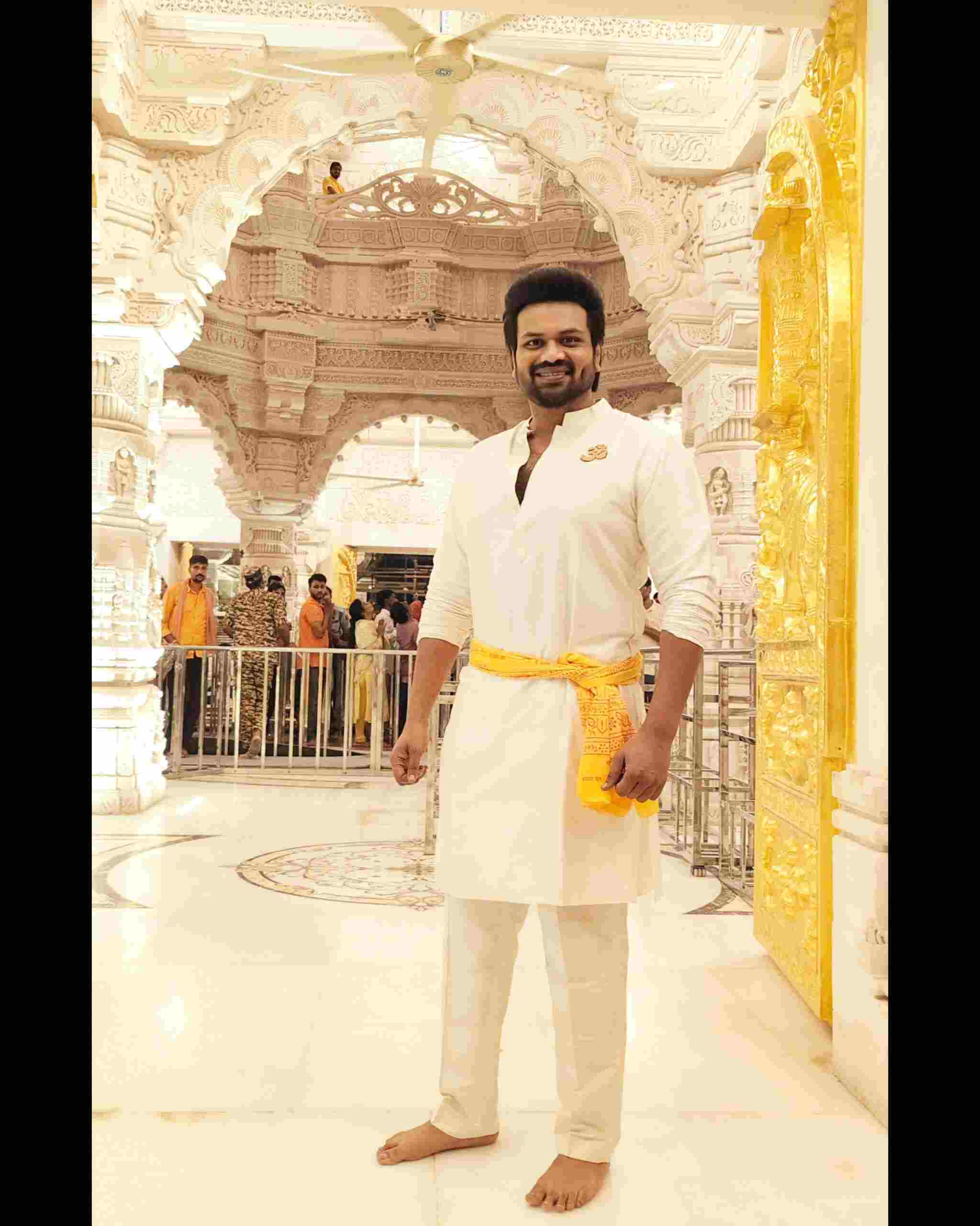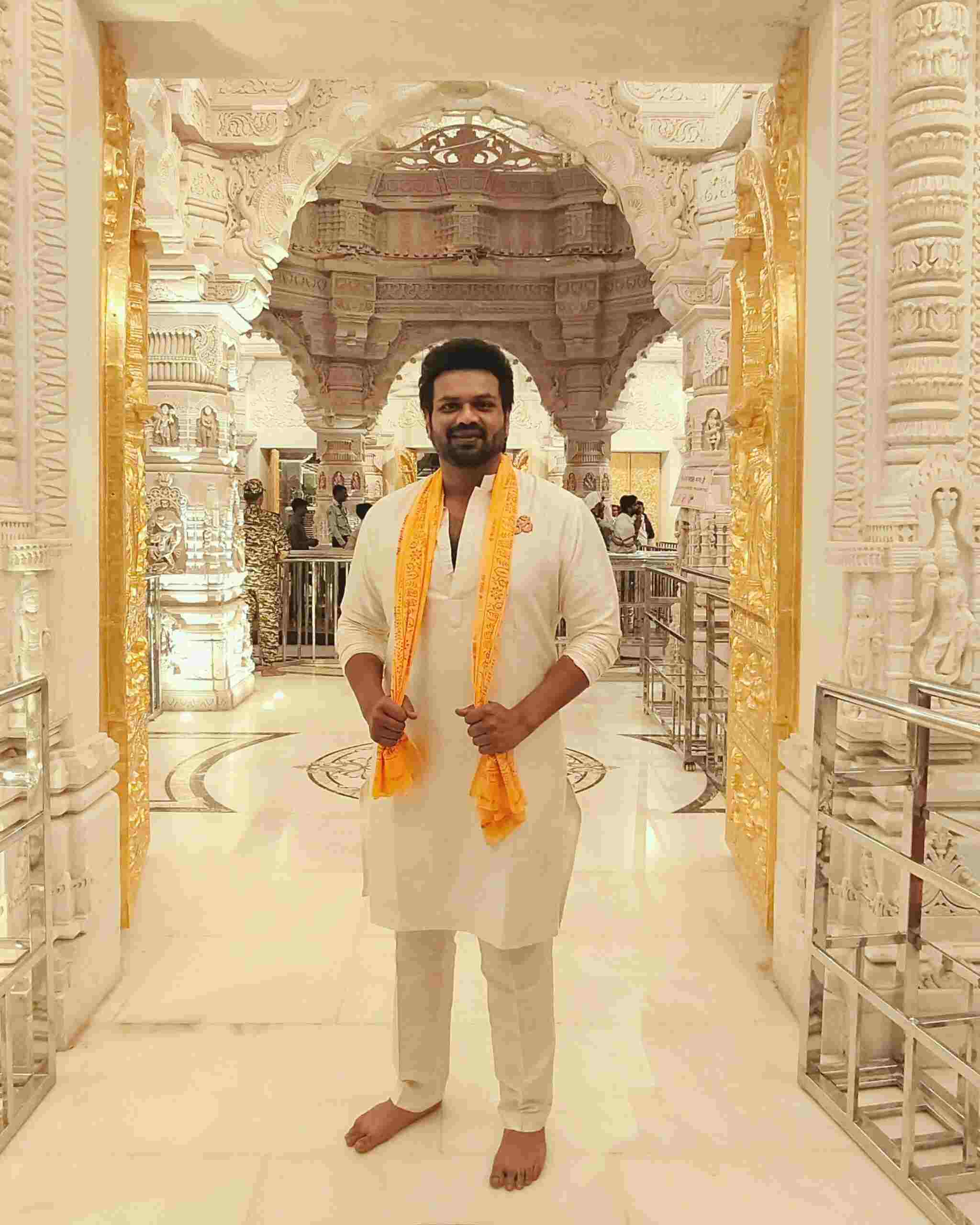 Amid the grand success of his new film Mirai, Rocking Star Manchu Manoj visited the holy city of Ayodhya to seek the blessings of Lord Sri Rama. Manoj revealed that he is beginning the Mirai success tour right from Ayodhya. He first offered prayers at Hanuman Garhi and later had the darshan of Lord Rama at the Ayodhya temple.