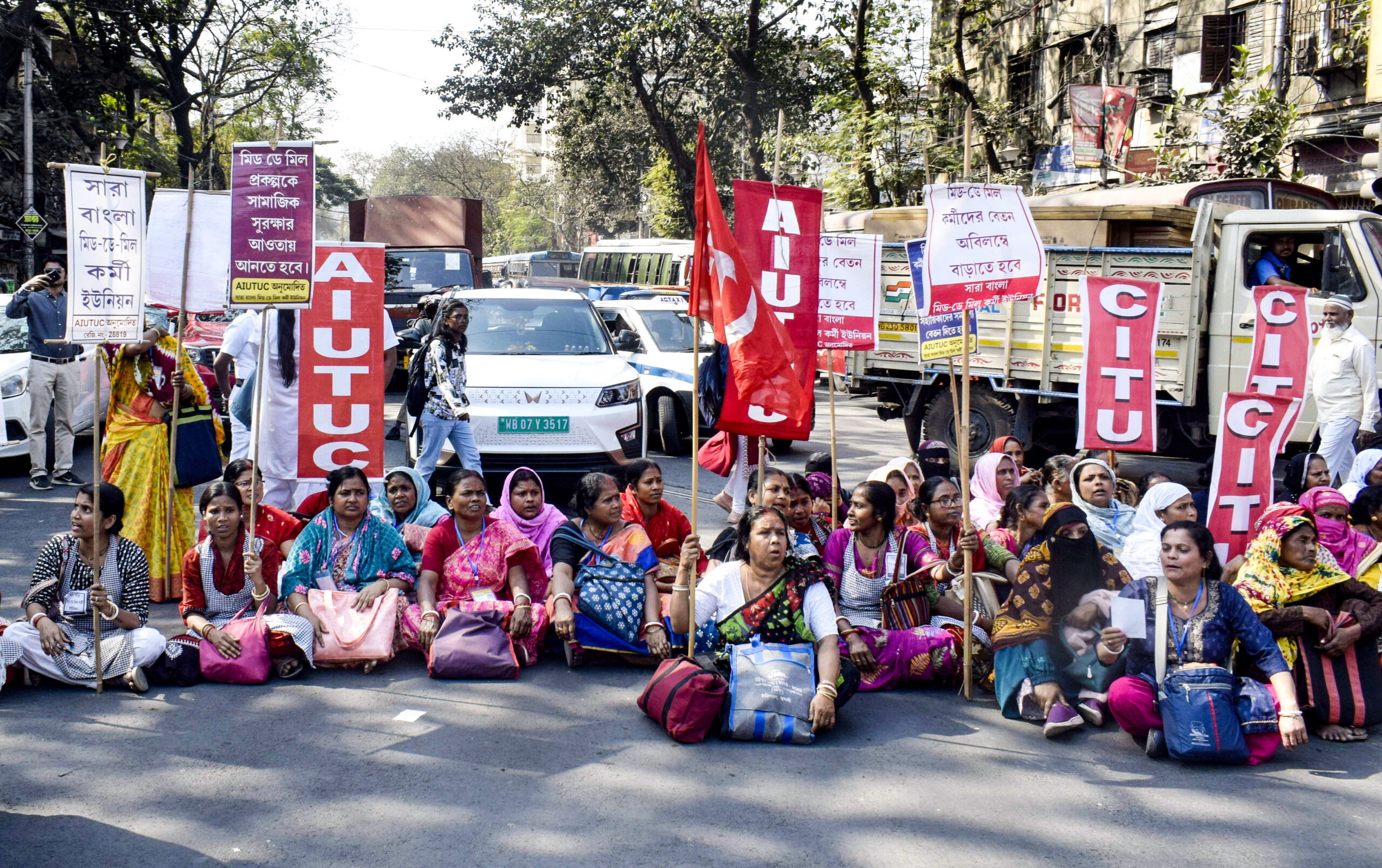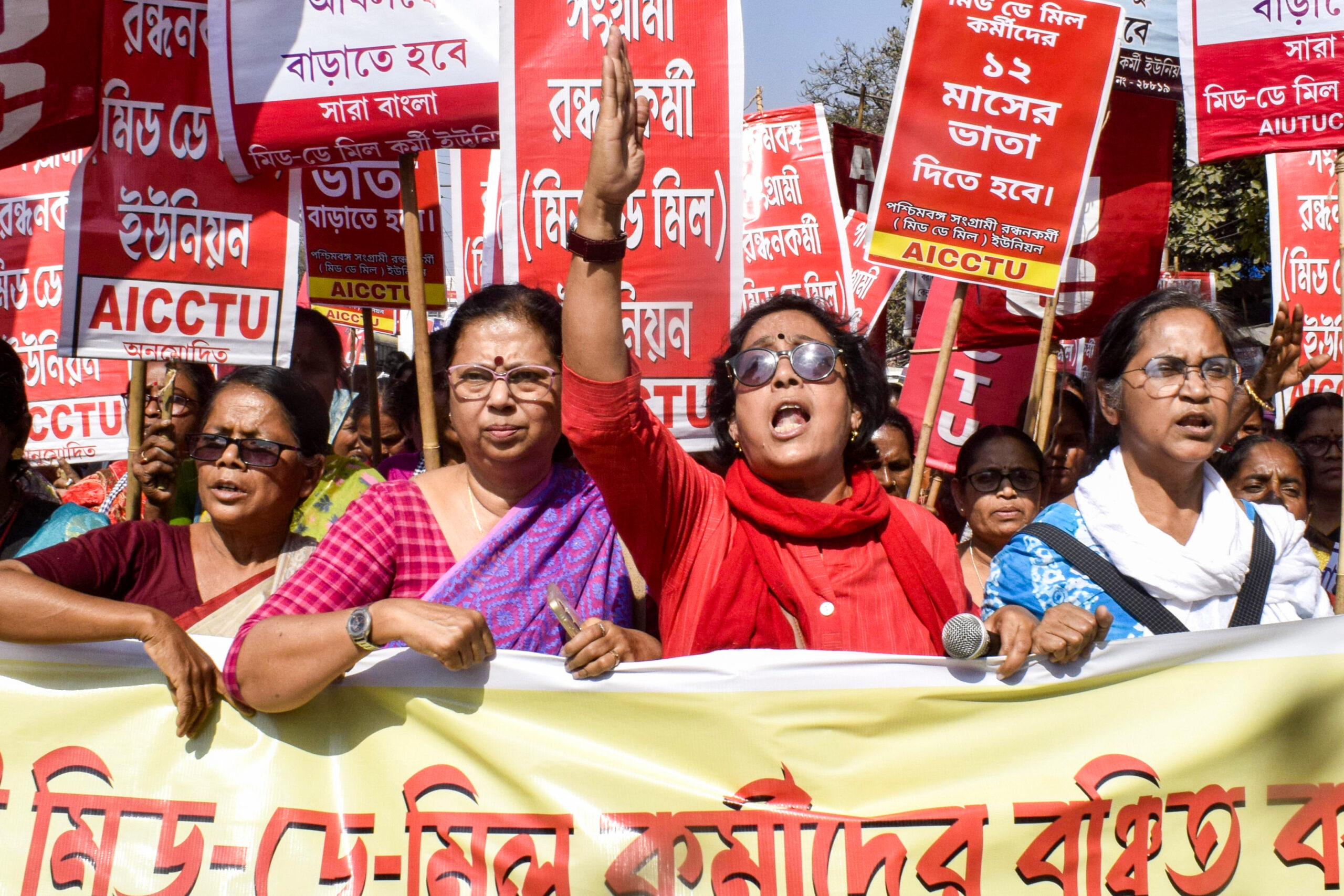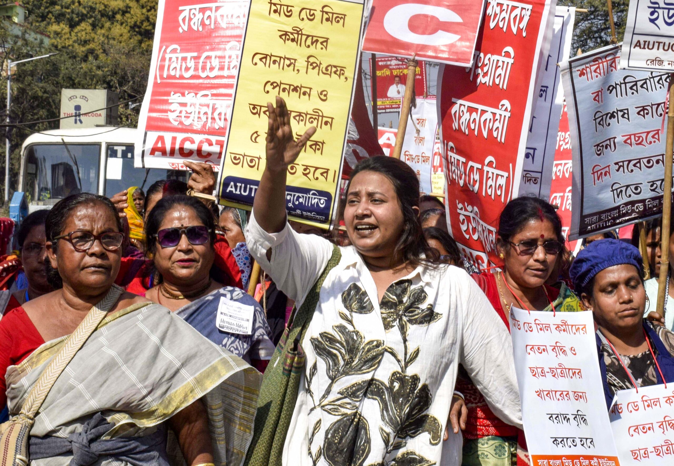 - Kolkata: Mid-Day Meal workers take part in a protest rally against the state budget for not increasing their wages and food allocation for students, blocking a road in Kolkata on Tuesday, February 10, 2026. (Photo: IANS/Kuntal Chakrabarty)